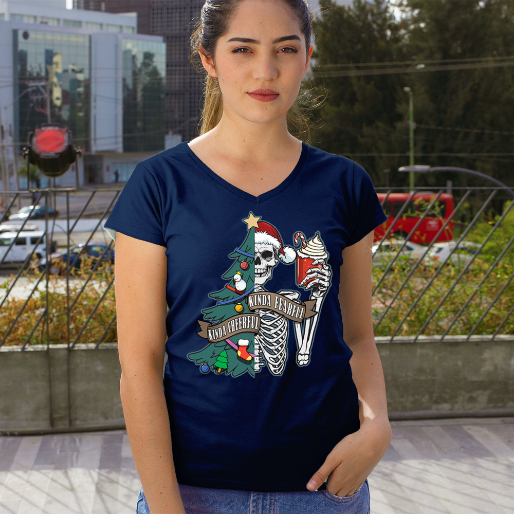 This creative Kinda Cheerful, Kinda Fearful design is a perfect blend of festive and spooky fun! Featuring a half-decorated Christmas tree and skeleton, it’s ideal for those who love combining Halloween and Christmas vibes. Great for secret Santa gifts, matching holiday pajamas, or rocking at your next ugly sweater contest. Perfect for office parties, family mornings, or simply adding some unique charm to your Feliz Navidad celebrations.
