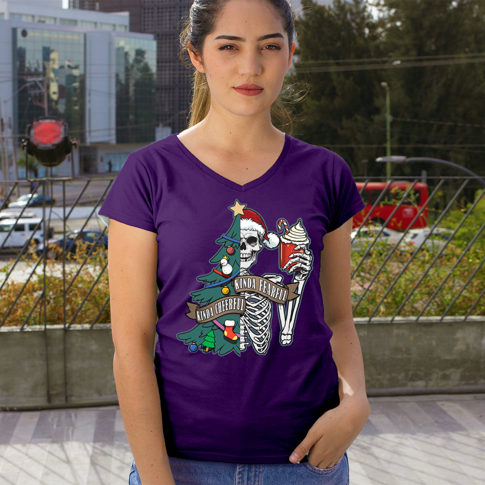 This creative Kinda Cheerful, Kinda Fearful design is a perfect blend of festive and spooky fun! Featuring a half-decorated Christmas tree and skeleton, it’s ideal for those who love combining Halloween and Christmas vibes. Great for secret Santa gifts, matching holiday pajamas, or rocking at your next ugly sweater contest. Perfect for office parties, family mornings, or simply adding some unique charm to your Feliz Navidad celebrations.