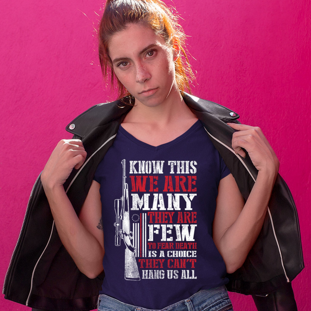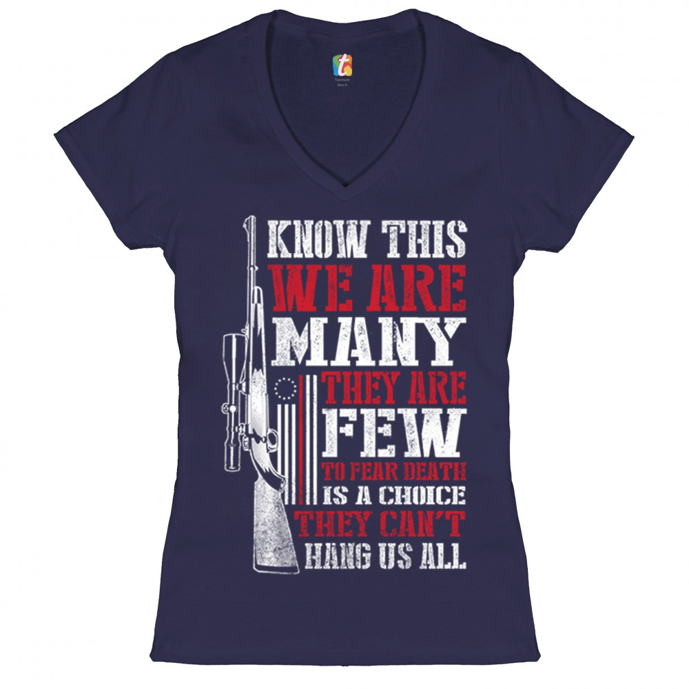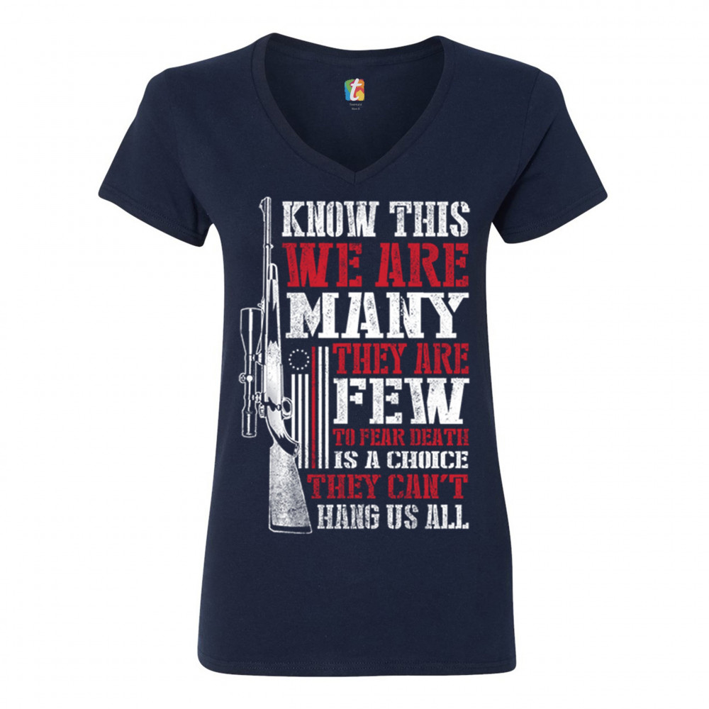 KNOW THIS WE ARE MANY THEY ARE FEW women's v-neck t-shirt 2nd amendment tee navy blue