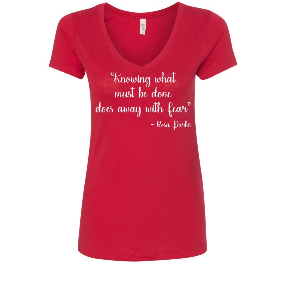 KNOWING WHAT MUST BE DONE - ROSA PARKS women's v-neck t-shirt civil rights red