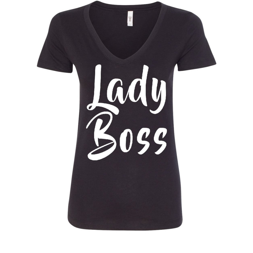 LADY BOSS women's v-neck t-shirt funny women's rights glam girl power feminist black