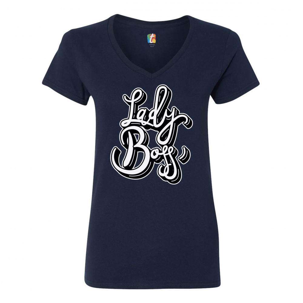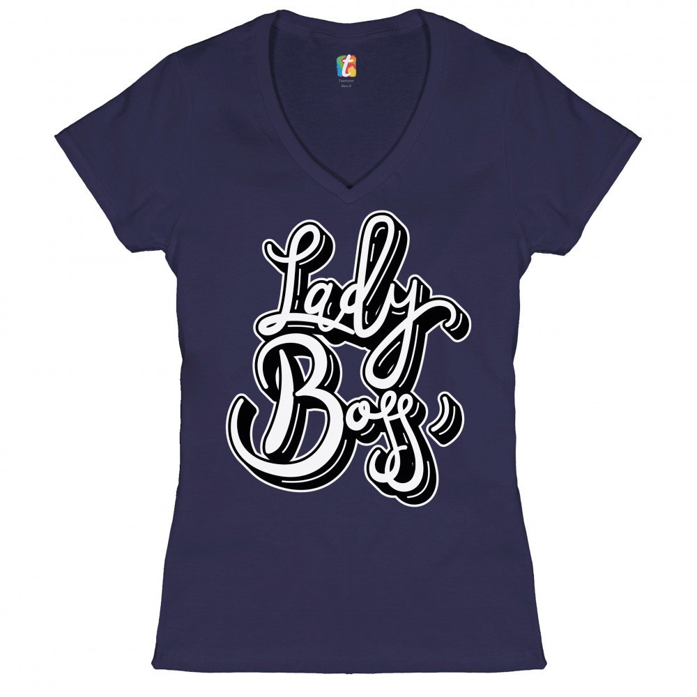 LADY BOSS women's v-neck t-shirt badass mother's day girl power mom life tee navy blue