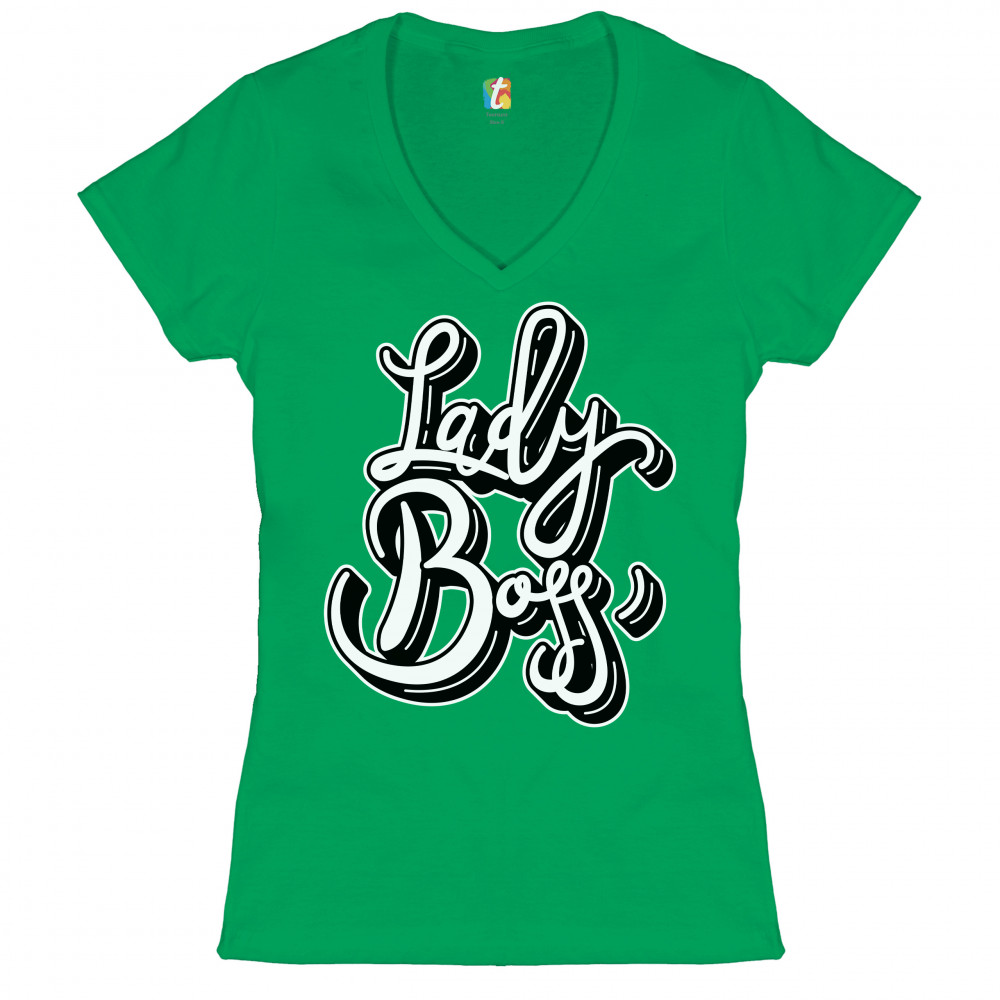 LADY BOSS women's v-neck t-shirt badass mother's day girl power mom life tee green