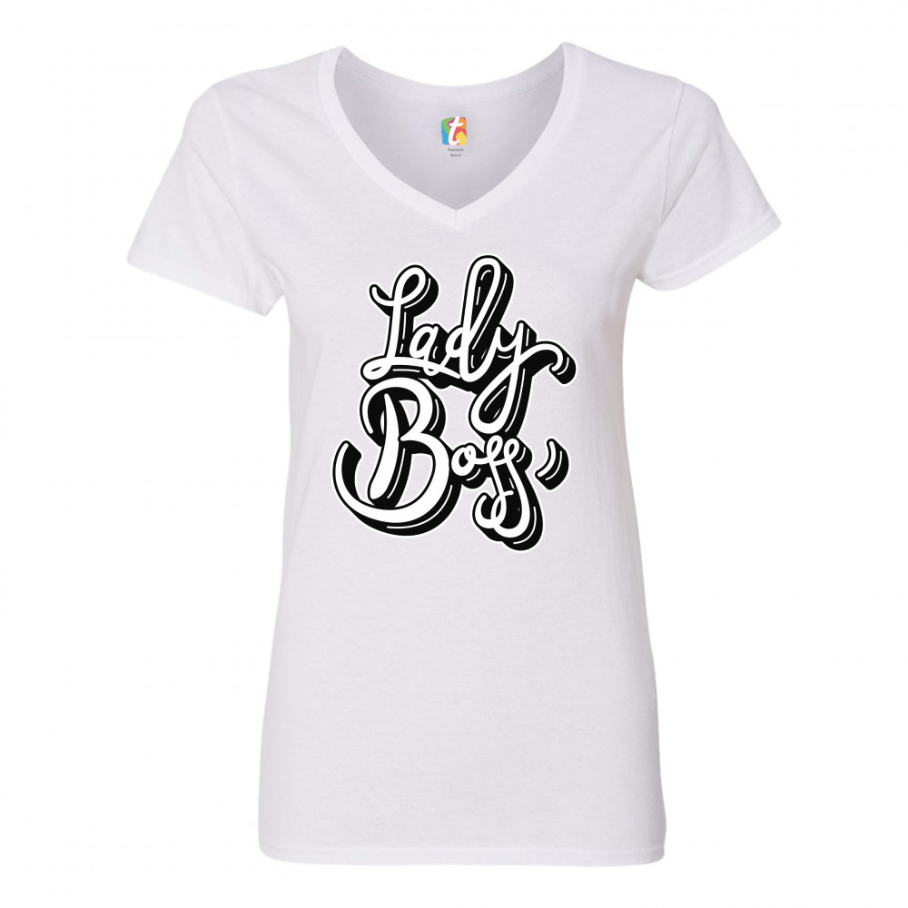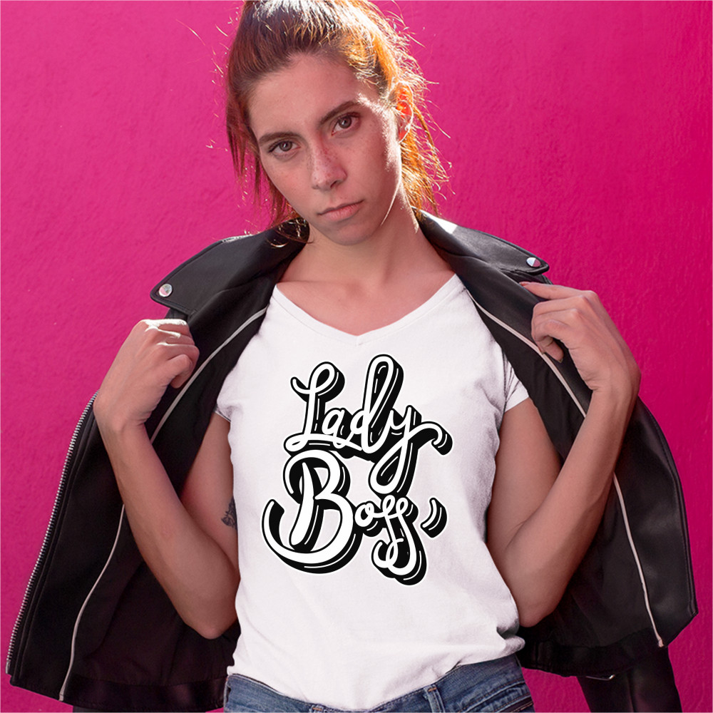 LADY BOSS women's v-neck t-shirt badass mother's day girl power mom life tee white