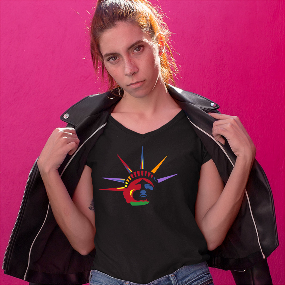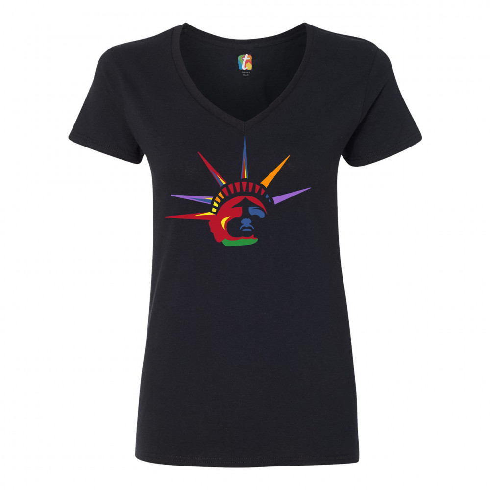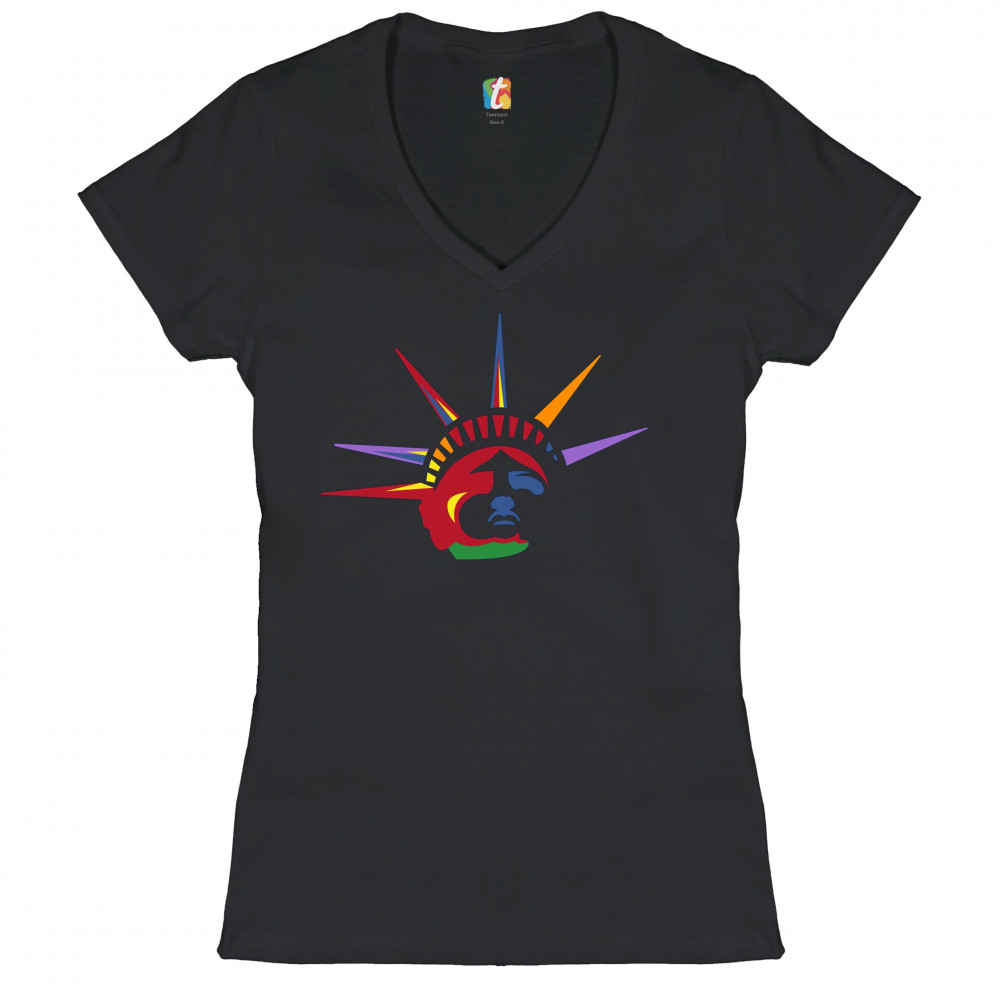 LADY LIBERTY women's v-neck t-shirt new york statue of liberty 4th of july tee black