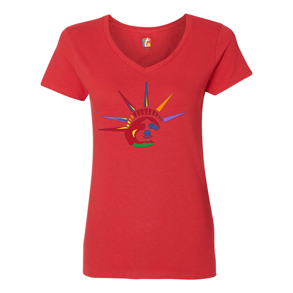 LADY LIBERTY women's v-neck t-shirt new york statue of liberty 4th of july tee red