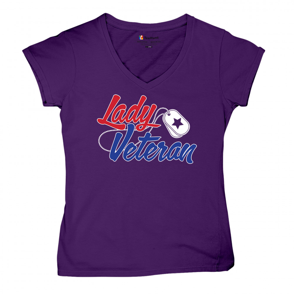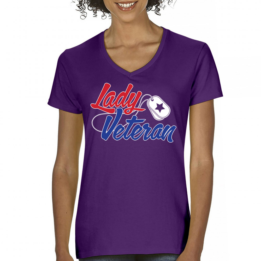 Celebrate female veterans with our "Lady Veteran" shirt. Bold red and blue design, perfect for Veterans Day and everyday wear. Honor and pride in service.