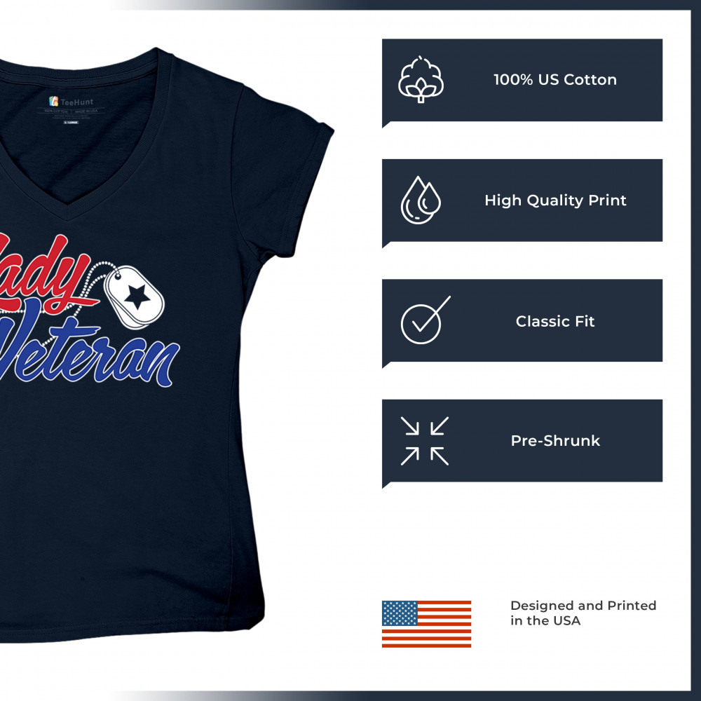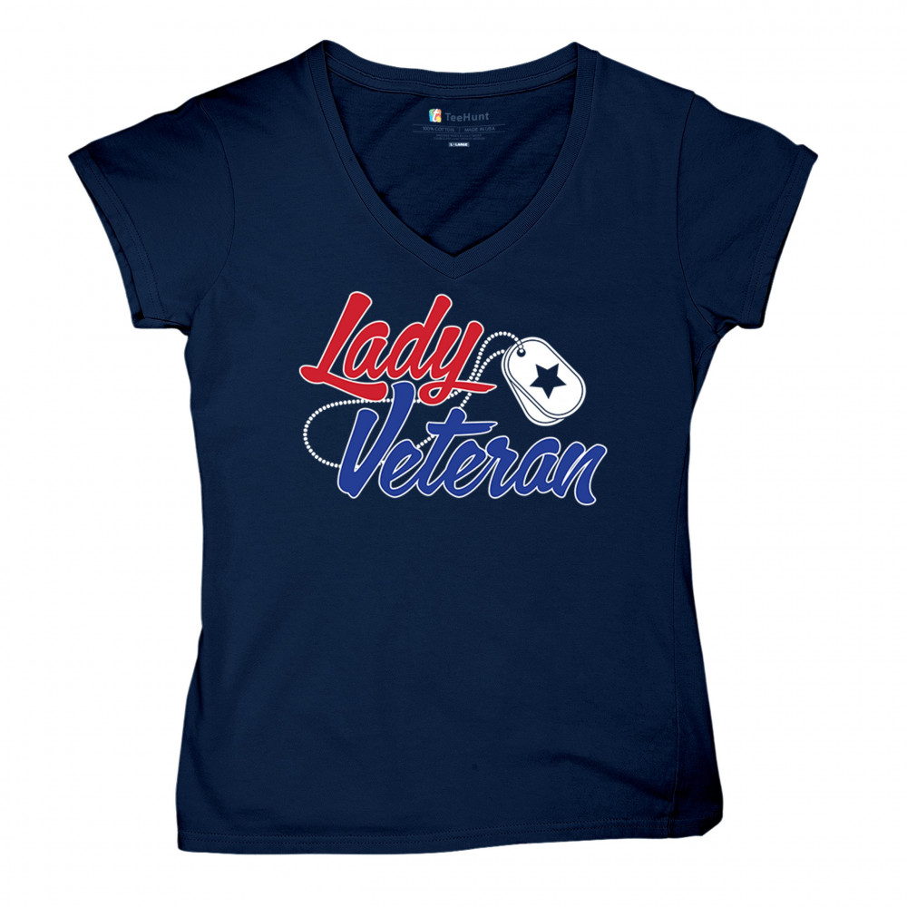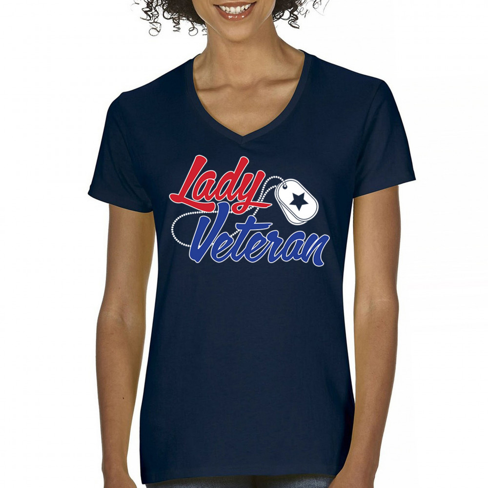 Celebrate female veterans with our "Lady Veteran" shirt. Bold red and blue design, perfect for Veterans Day and everyday wear. Honor and pride in service.
