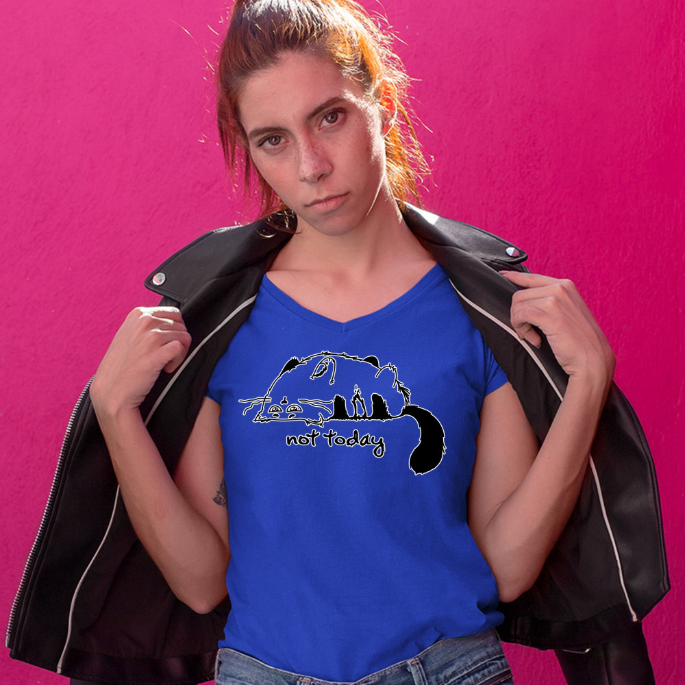LAZY KITTY NOT TODAY women's v-neck t-shirt kitten cat lovers funny tee royal blue