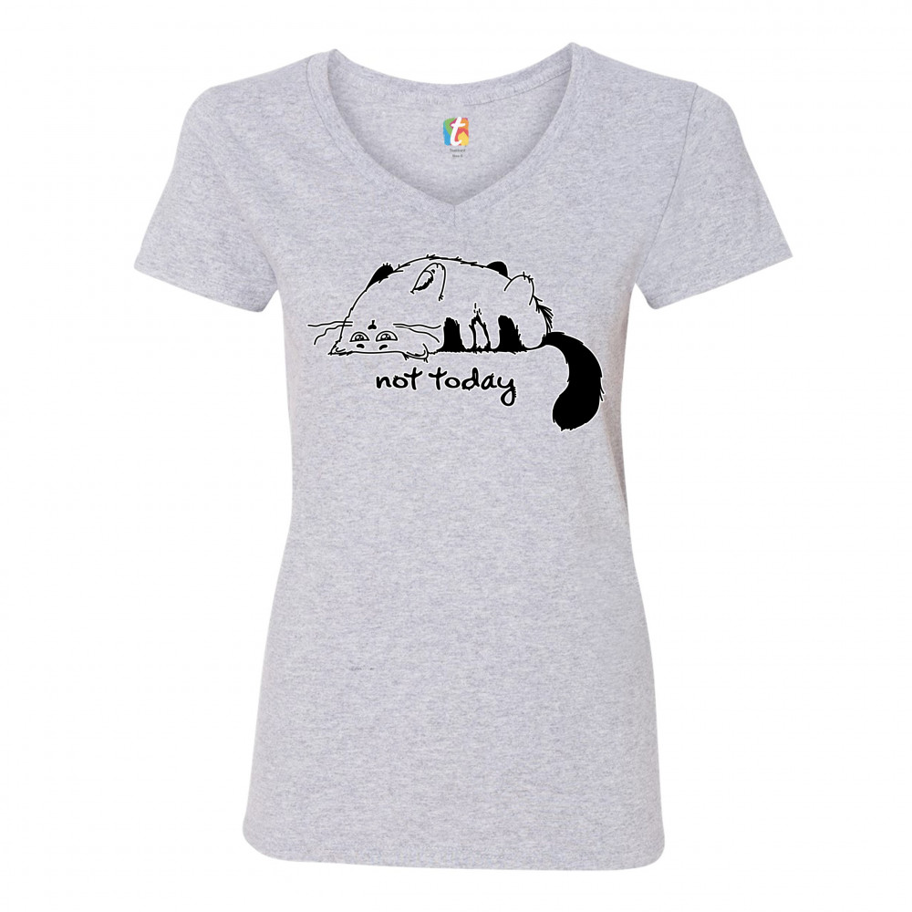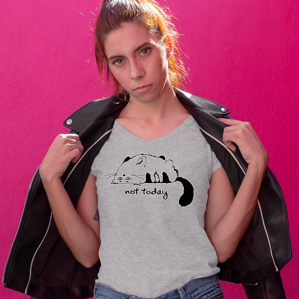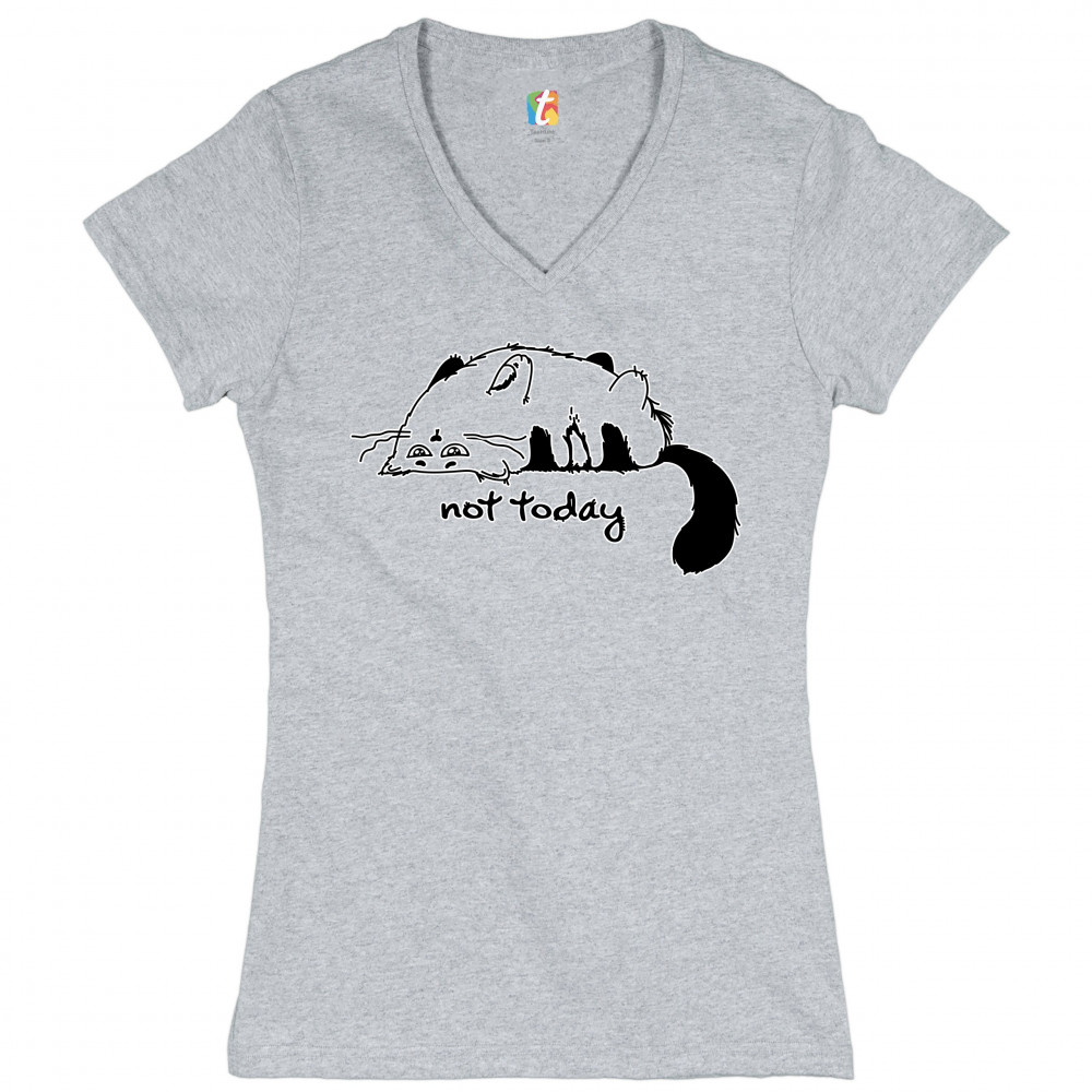 LAZY KITTY NOT TODAY women's v-neck t-shirt kitten cat lovers funny tee gray