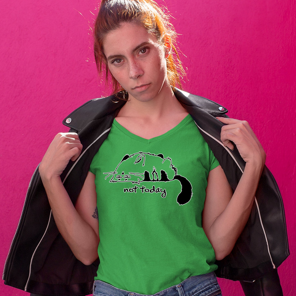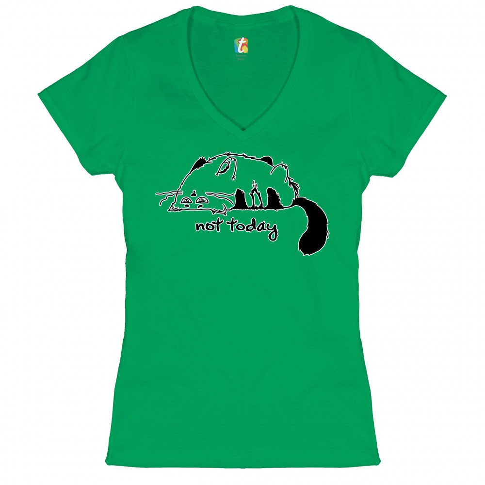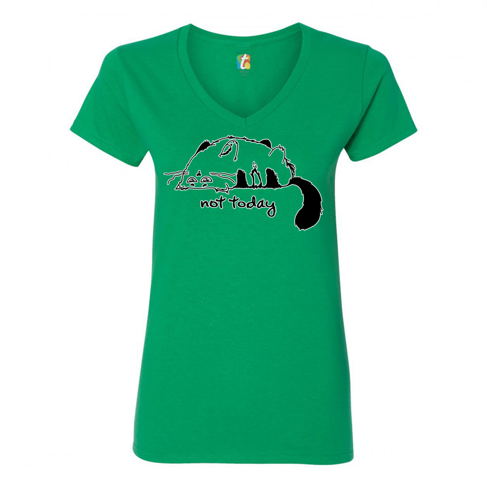 LAZY KITTY NOT TODAY women's v-neck t-shirt kitten cat lovers funny tee green