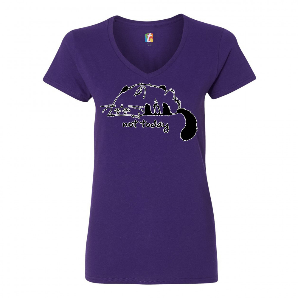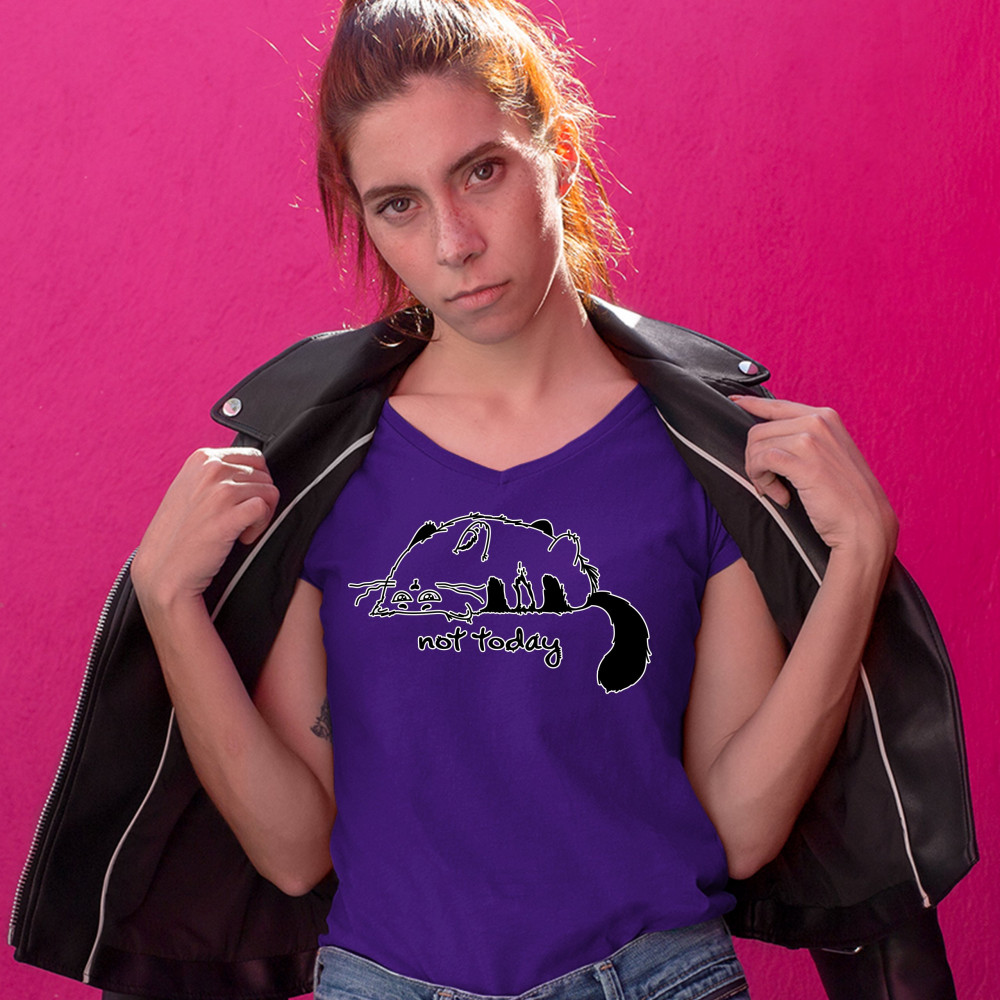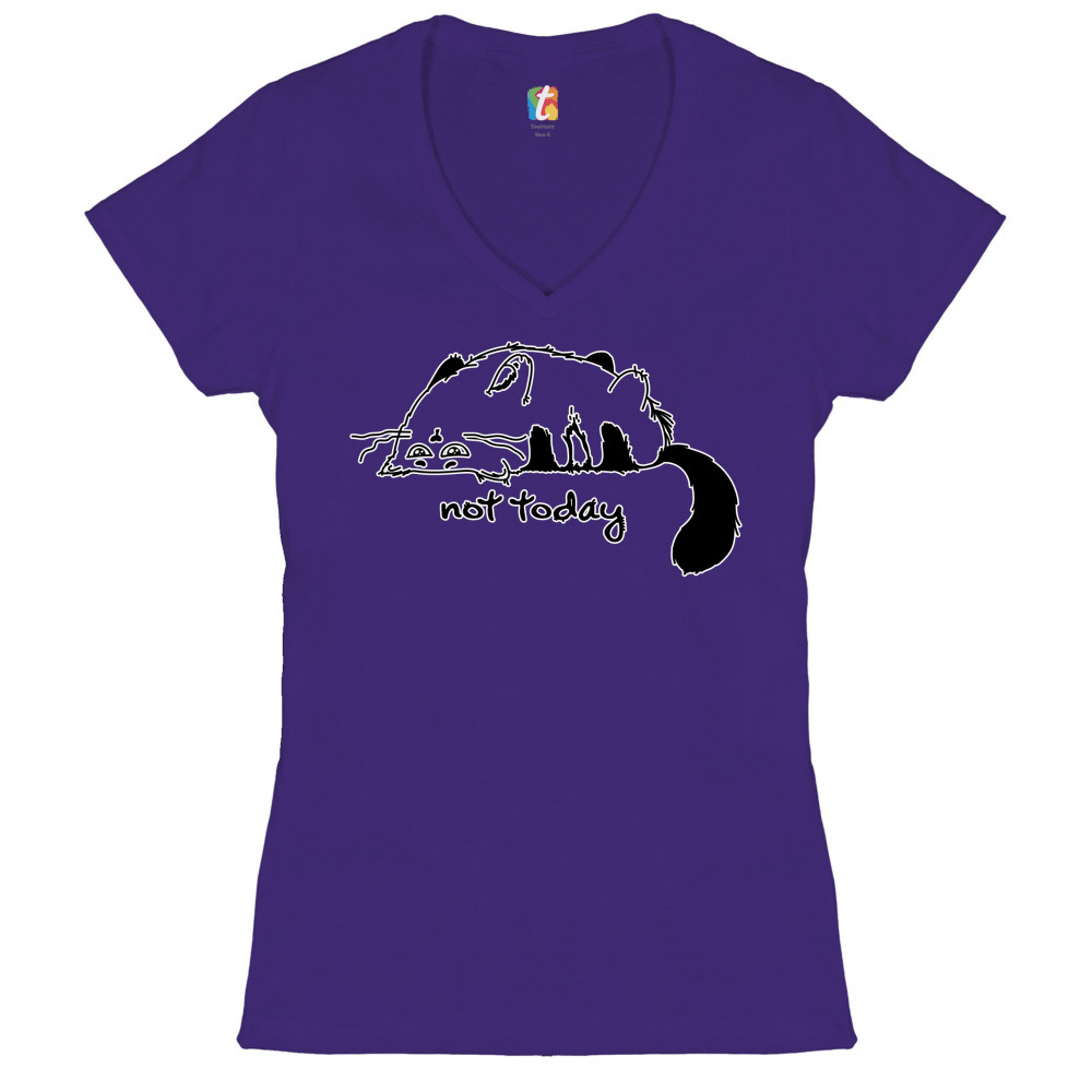 LAZY KITTY NOT TODAY women's v-neck t-shirt kitten cat lovers funny tee purple
