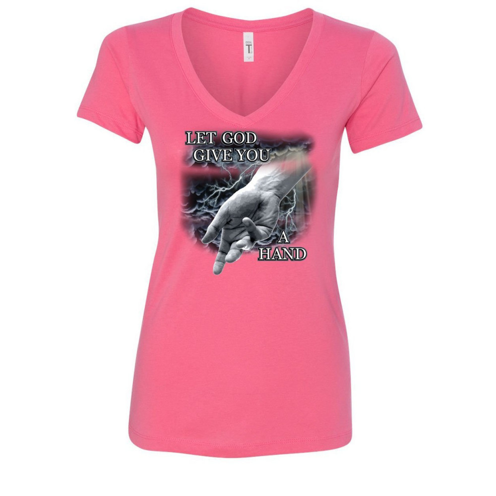 LET GOD GIVE YOU A HAND women's v-neck t-shirt religious catholic jesus bible pink