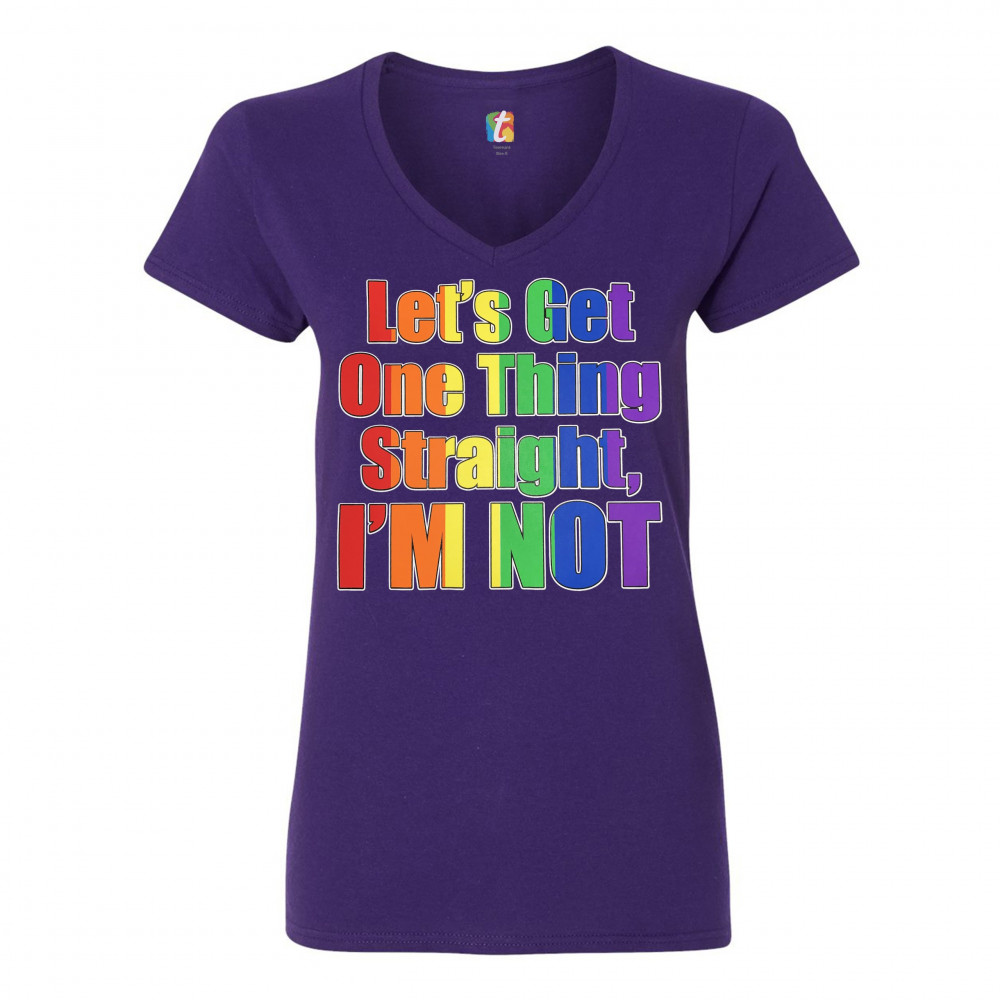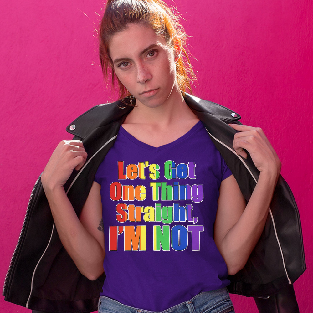 LET'S GET ONE THING STRAIGHT, I'M NOT women's v-neck t-shirt lgbt rainbow tee purple
