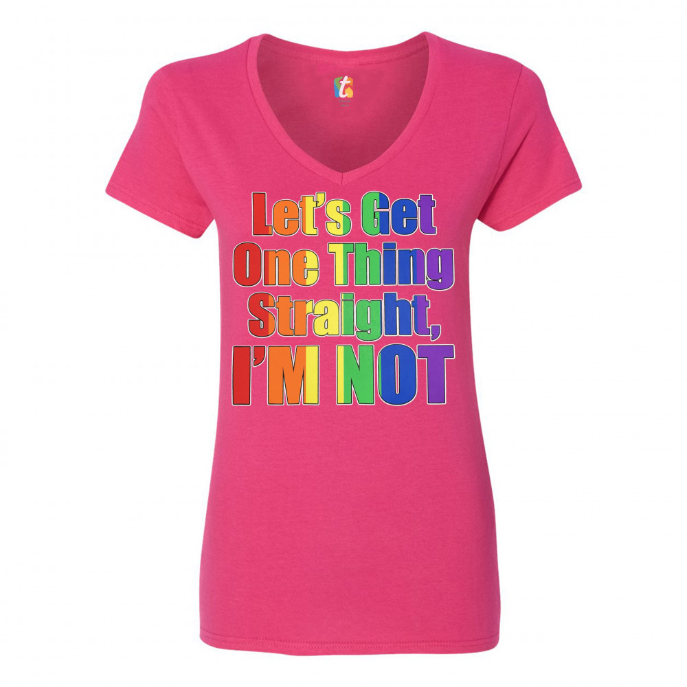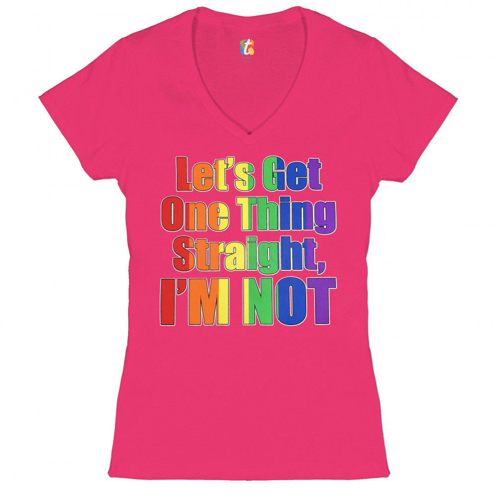 LET'S GET ONE THING STRAIGHT, I'M NOT women's v-neck t-shirt lgbt rainbow tee pink