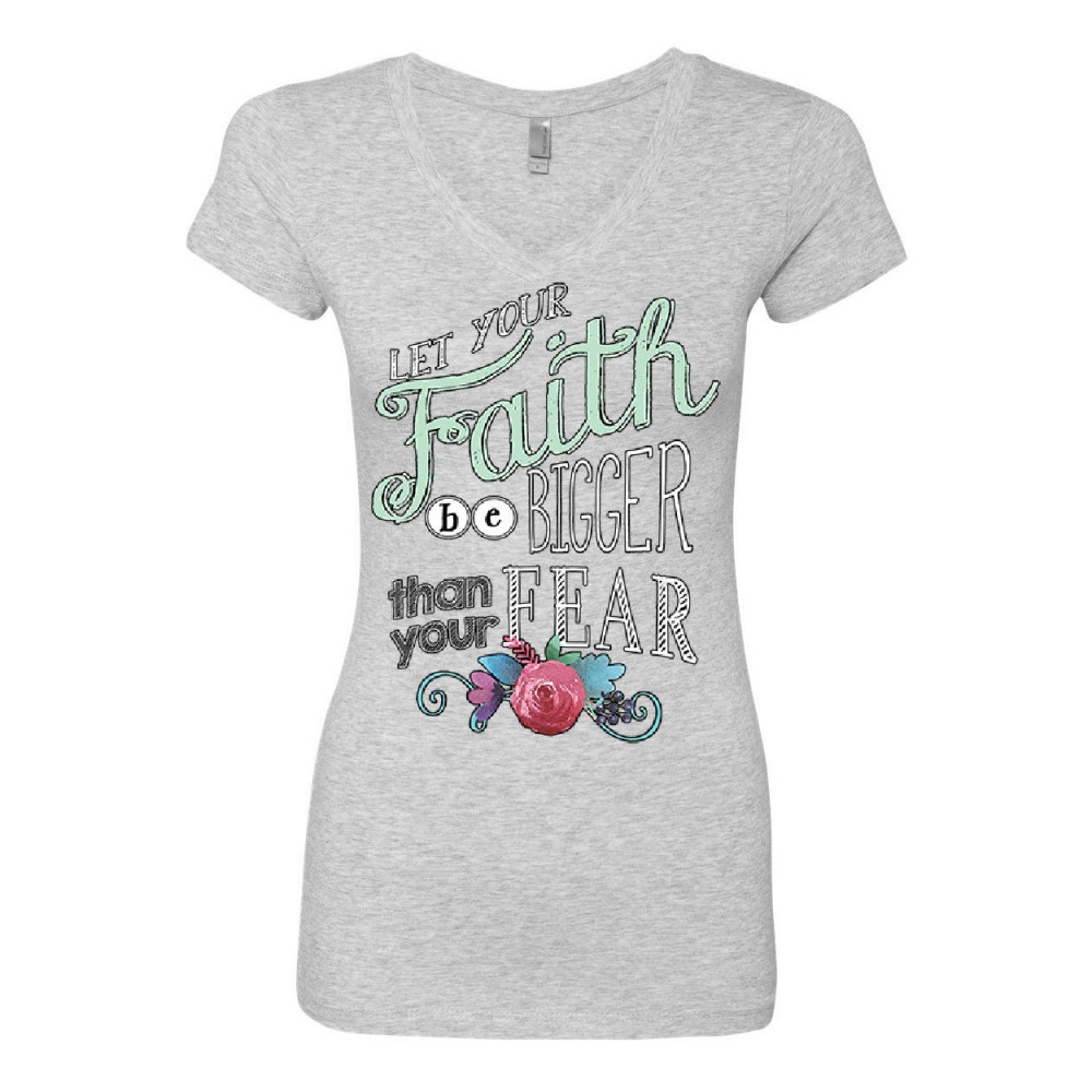 LET YOUR FAITH BE BIGGER women's v-neck t-shirt inspiration god religion bible gray
