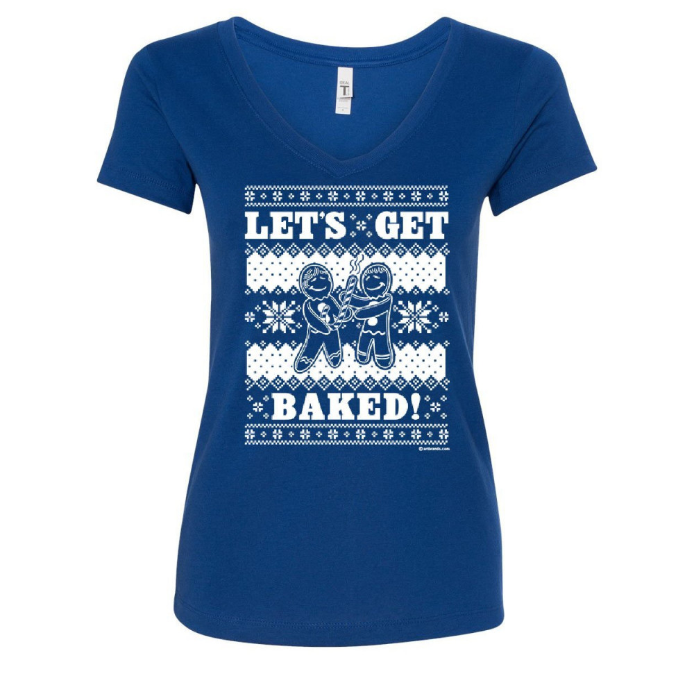 LET'S GET BAKED 420 women's v-neck t-shirt ugly sweatshirt christmas royal blue