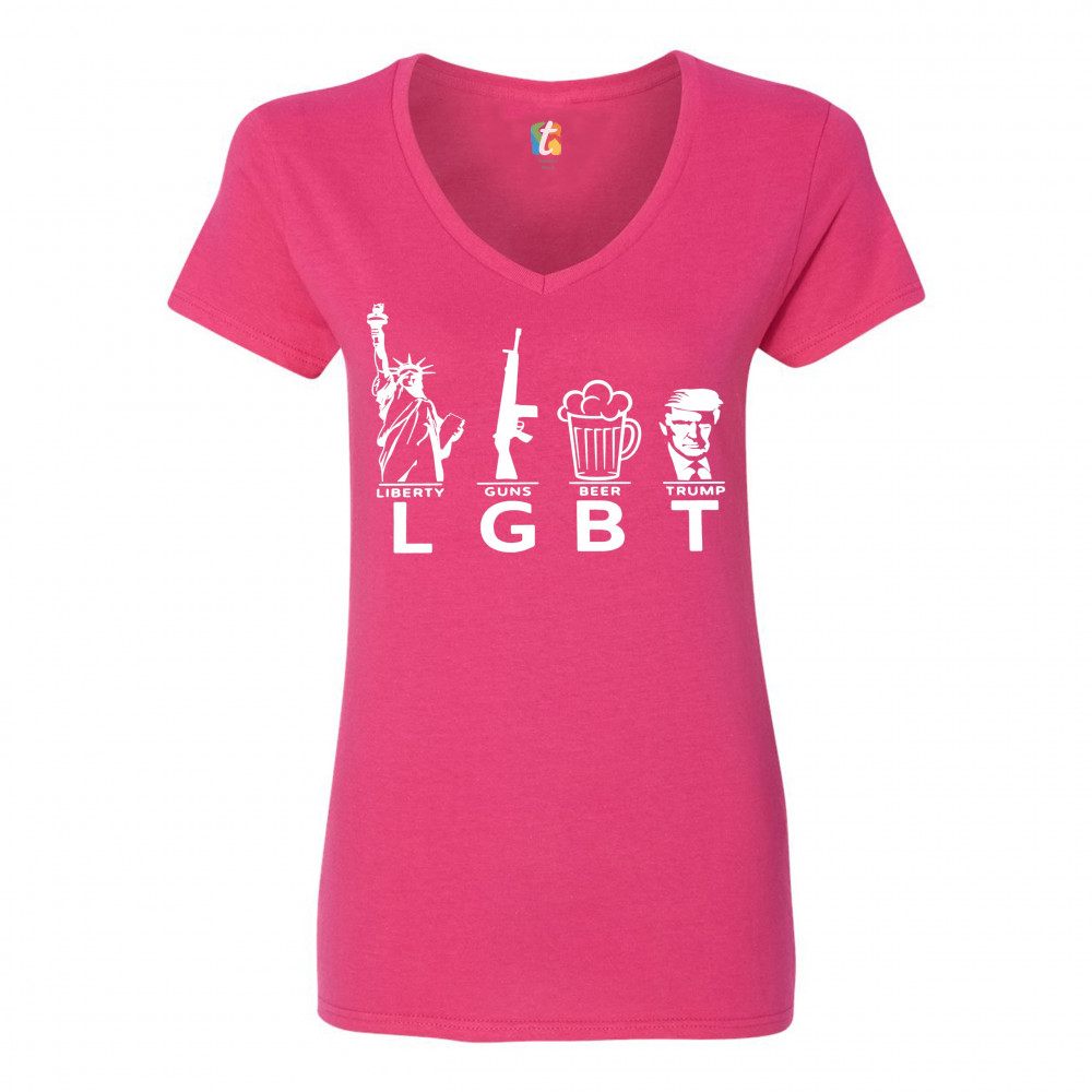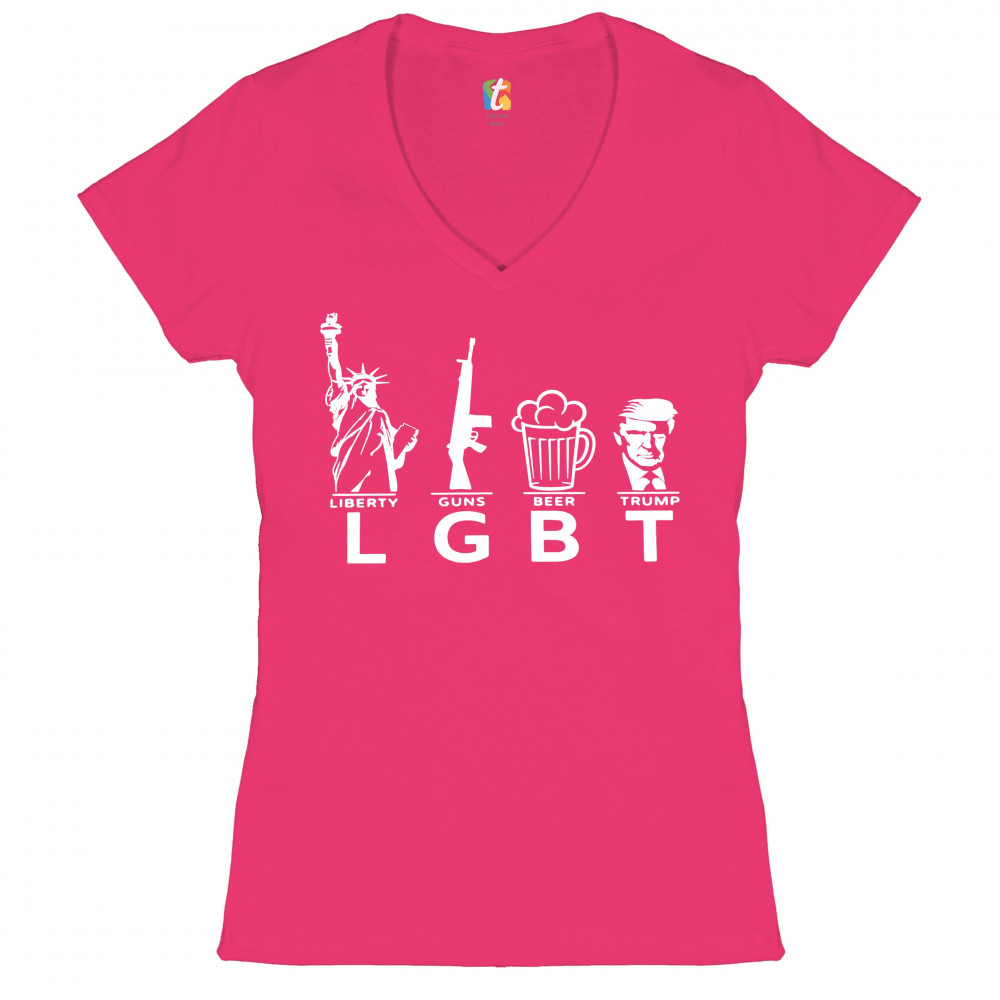 A funny political print featuring big letters LGBT, which stand for "Liberty, Guns, Beer and Trump". Above each word there are an underlined images of the Statue of Liberty, a rifle, a glass of beer and a picture of Donald Trump respectively. A great choi