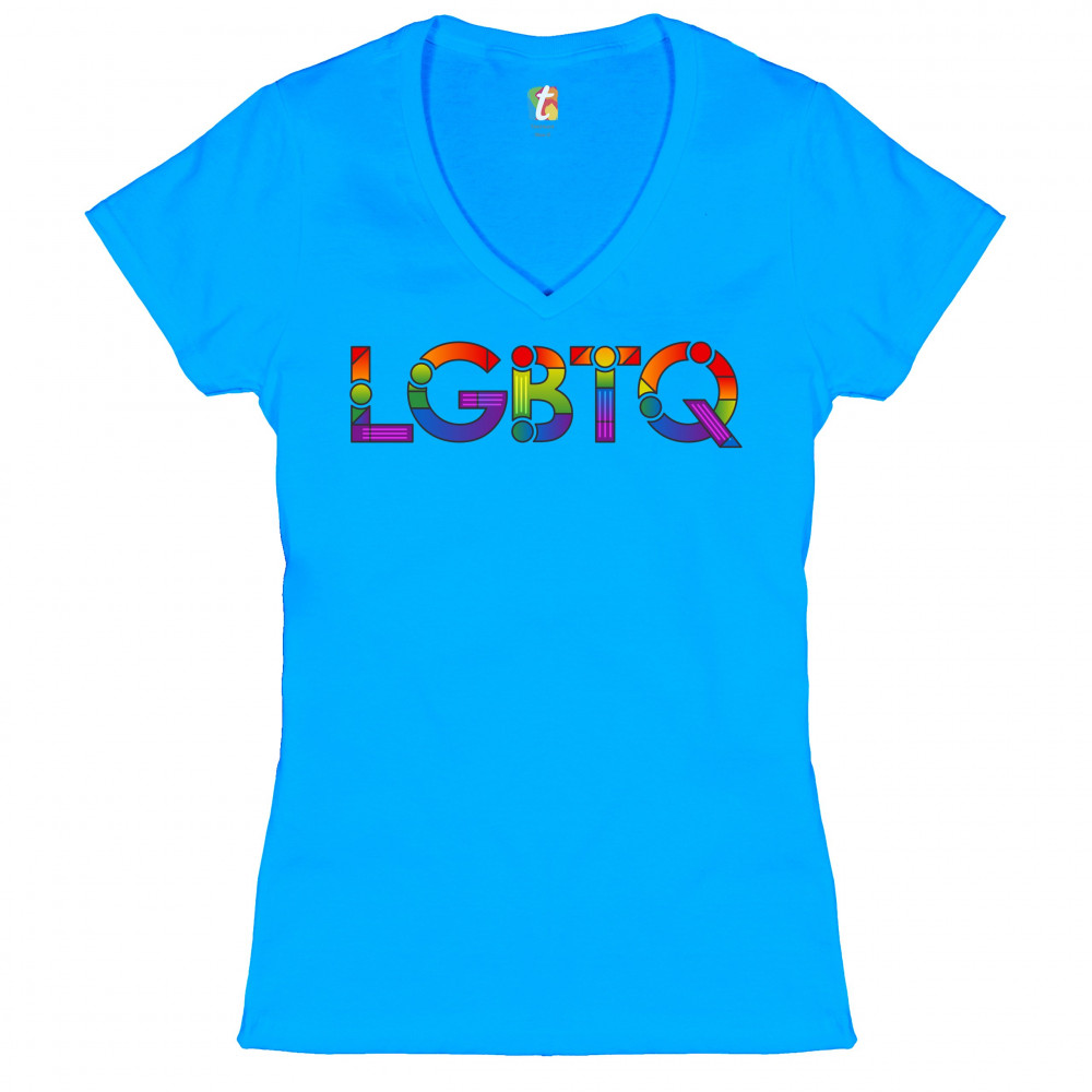 LGBTQ women's v-neck t-shirt lesbian gay bisexual transgender queer pride tee turquoise