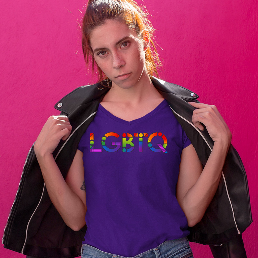 LGBTQ women's v-neck t-shirt lesbian gay bisexual transgender queer pride tee purple