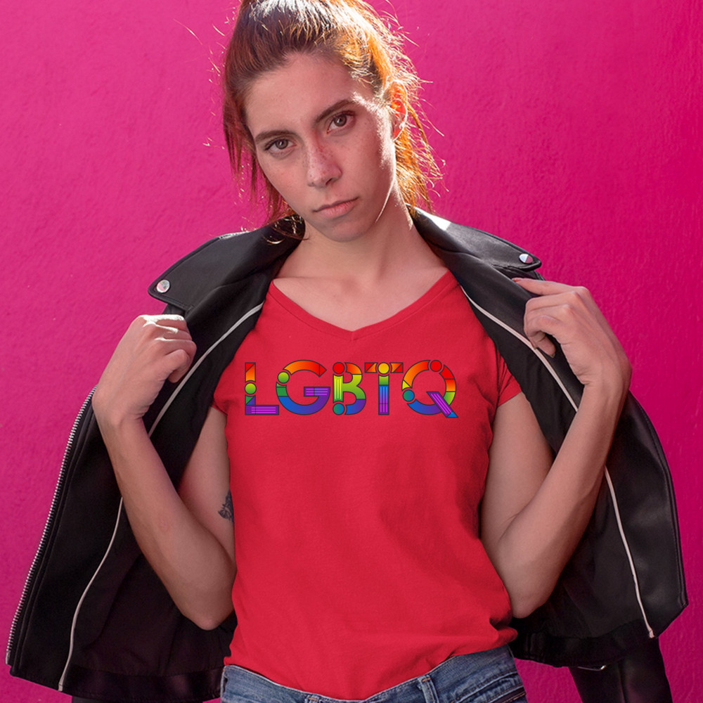 LGBTQ women's v-neck t-shirt lesbian gay bisexual transgender queer pride tee red