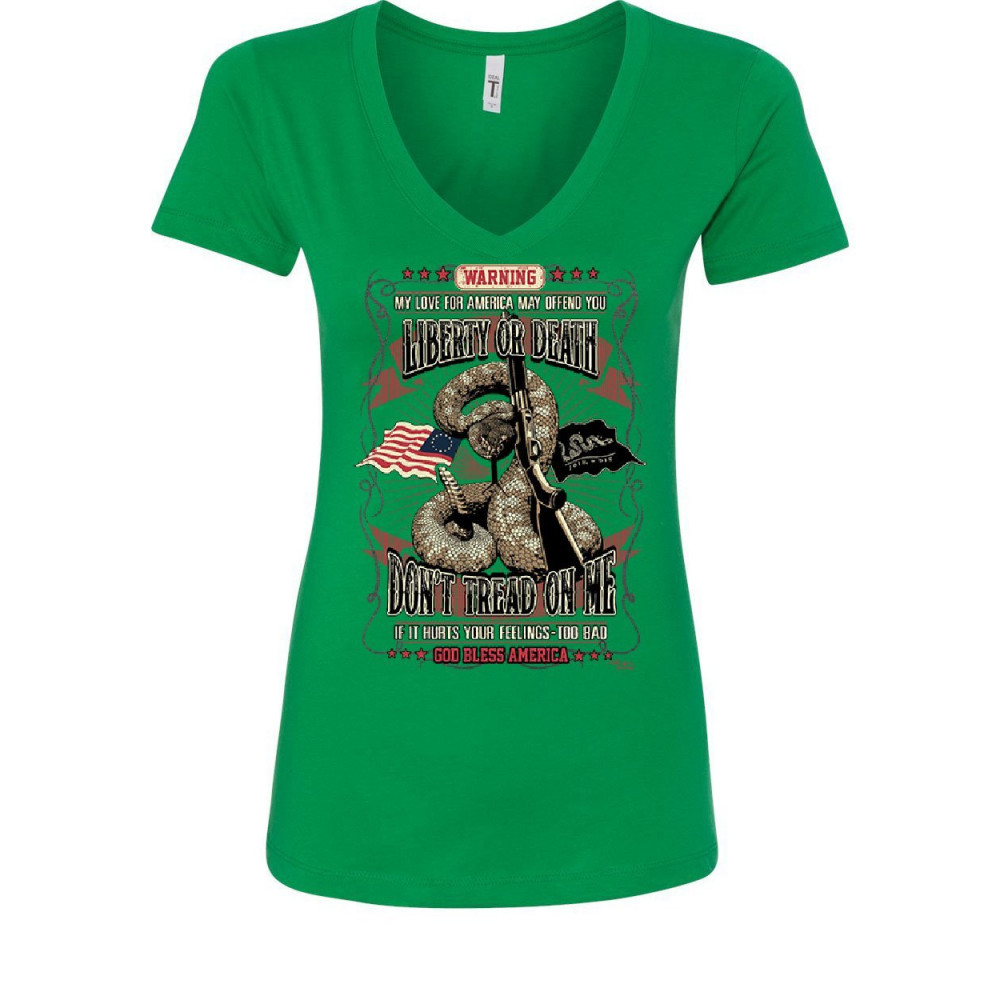LIBERTY OR DEATH DON'T TREAD ON ME women's v-neck t-shirt gadsden flag america green