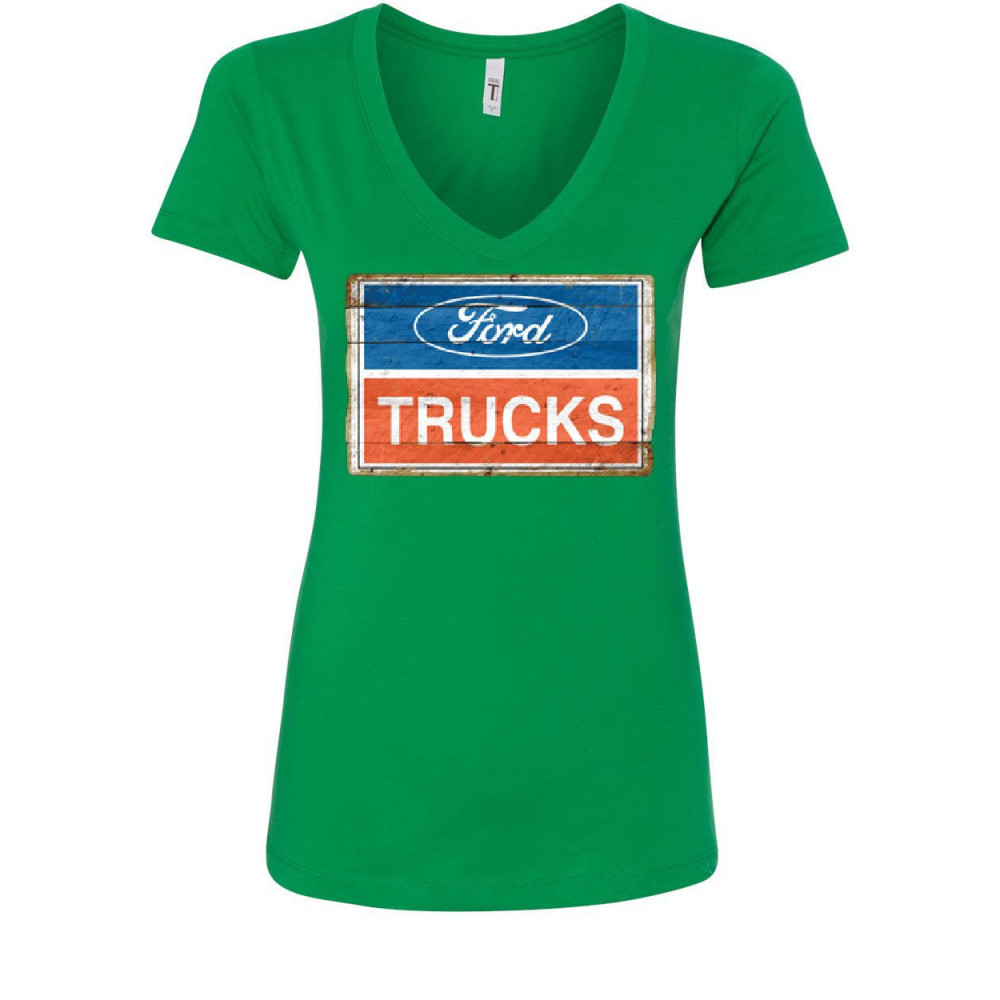 FORD TRUCKS OLD SIGN v-neck t-shirt licensed ford built tough green