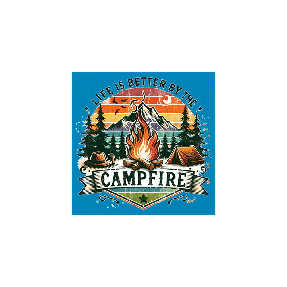 Life is Better by the Campfire brings rustic charm and outdoor adventure together with a glowing fire, mountain scenery, and pine forest. Ideal for forest lovers, campers, and national park explorers, this design evokes wilderness vibes, tent life, and the thrill of travel. Great value for anyone who believes adventure begins under the stars.