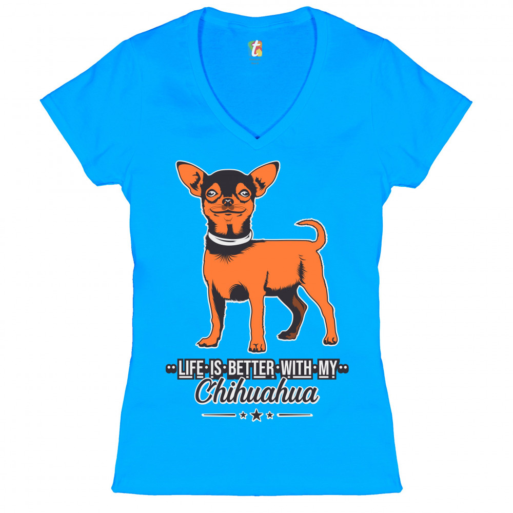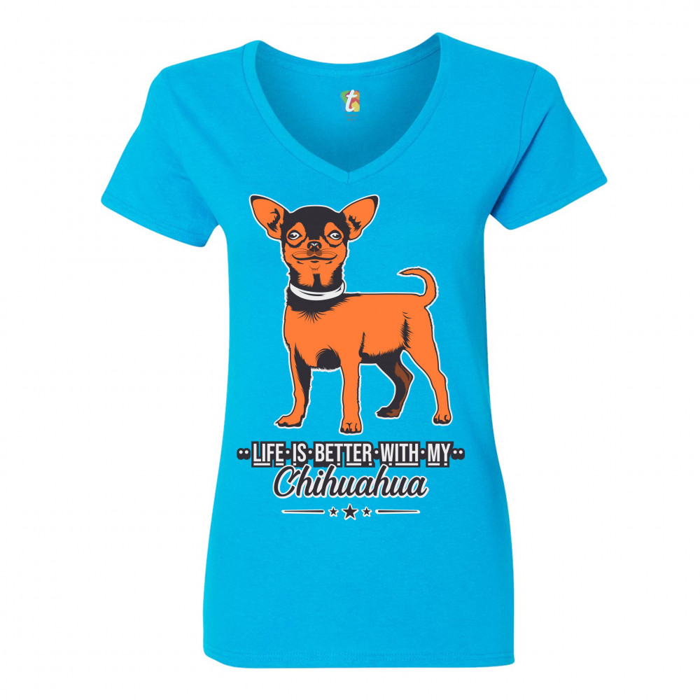LIFE IS BETTER WITH MY CHIHUAHUA women's v-neck t-shirt toy dog lover cute tee turquoise