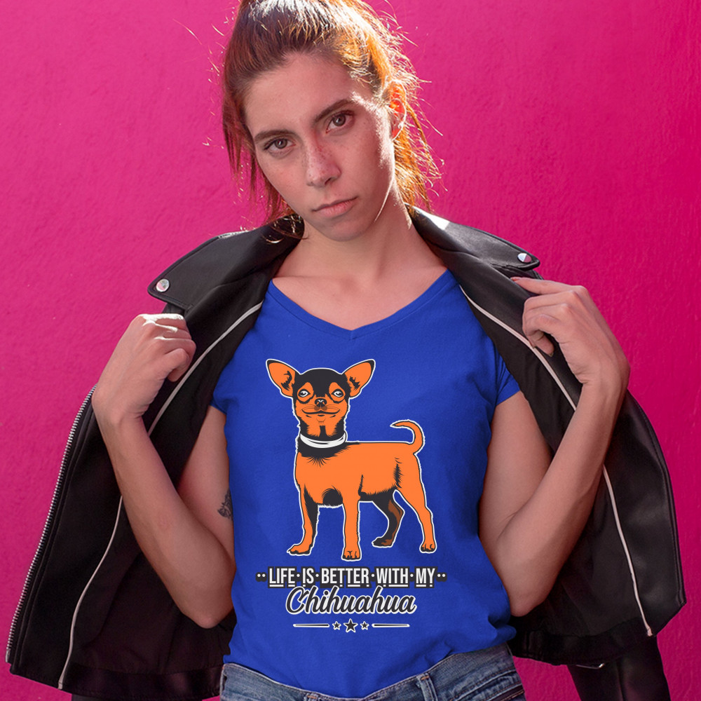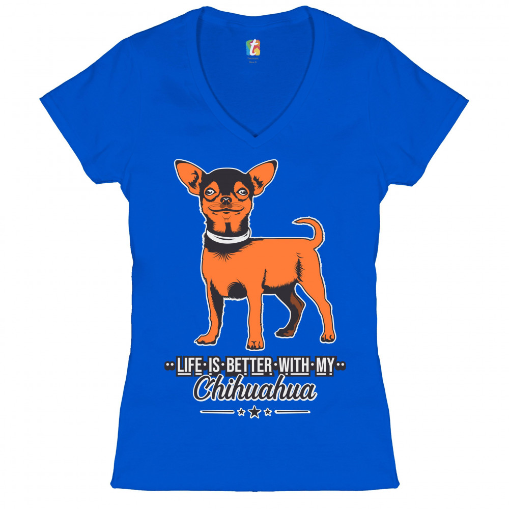 LIFE IS BETTER WITH MY CHIHUAHUA women's v-neck t-shirt toy dog lover cute tee royal blue