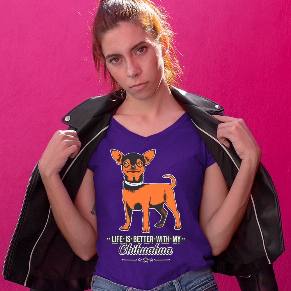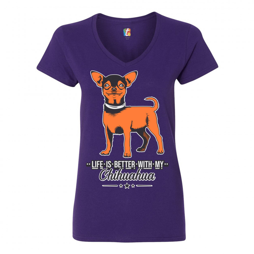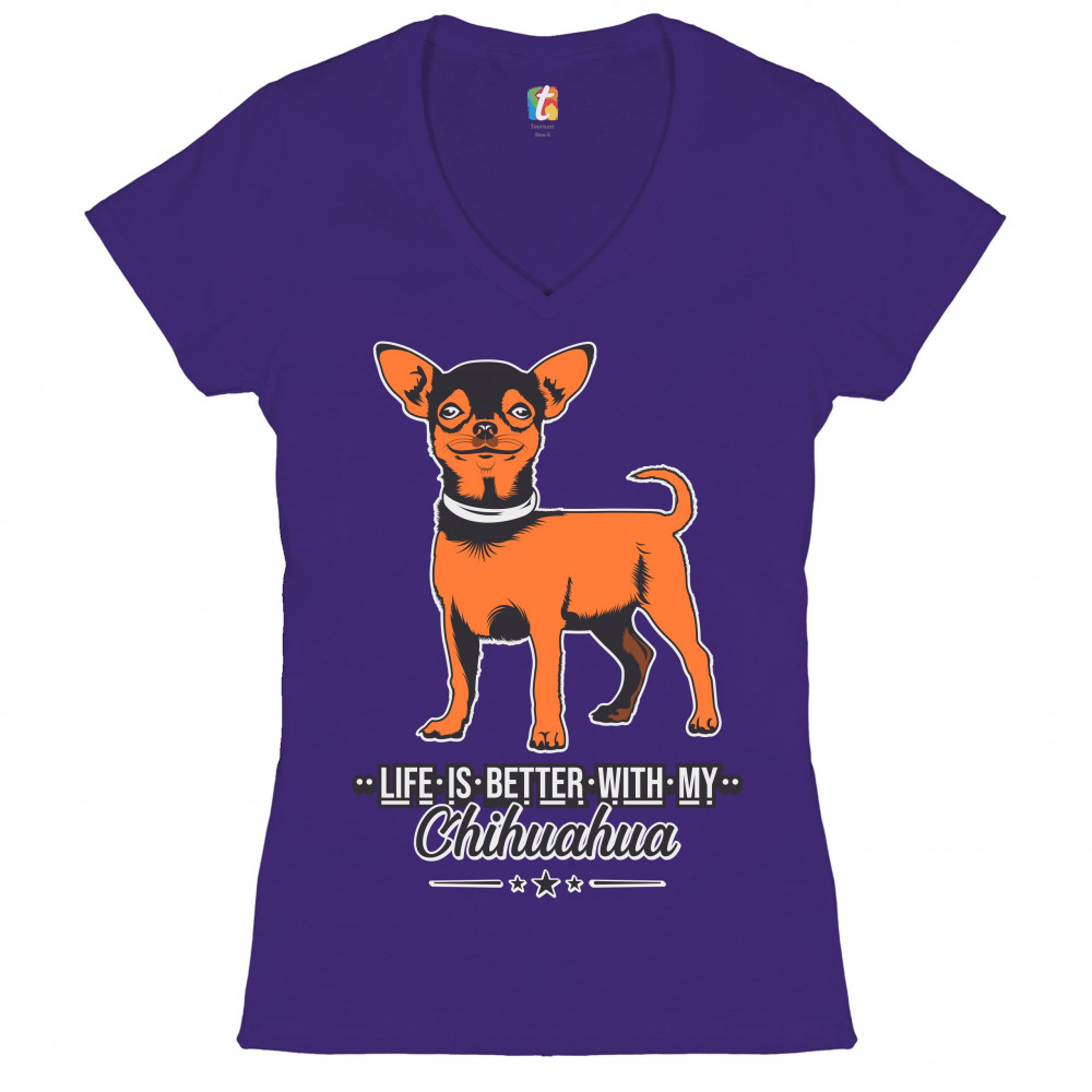LIFE IS BETTER WITH MY CHIHUAHUA women's v-neck t-shirt toy dog lover cute tee purple