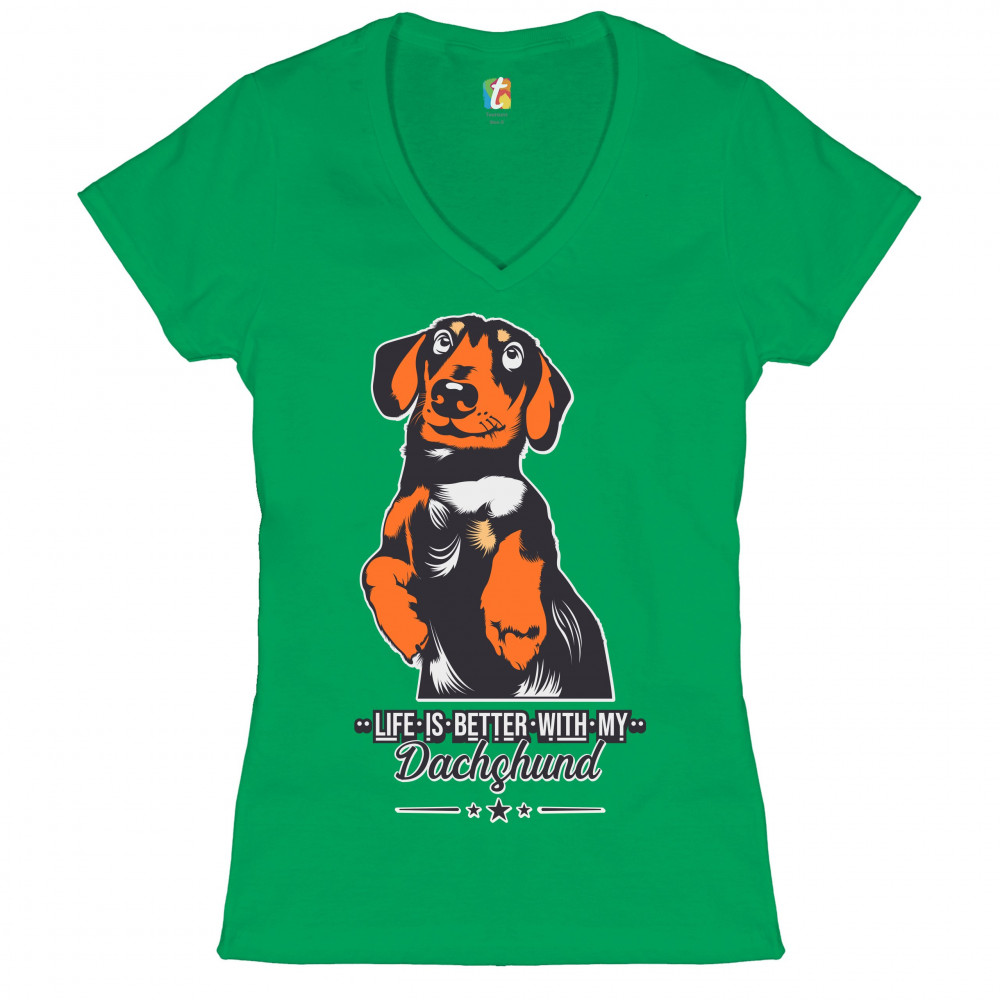 LIFE IS BETTER WITH MY DACHSUND women's v-neck t-shirt i love my dog pet tee green