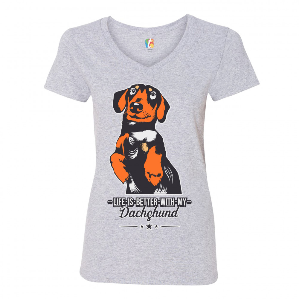 LIFE IS BETTER WITH MY DACHSUND women's v-neck t-shirt i love my dog pet tee gray