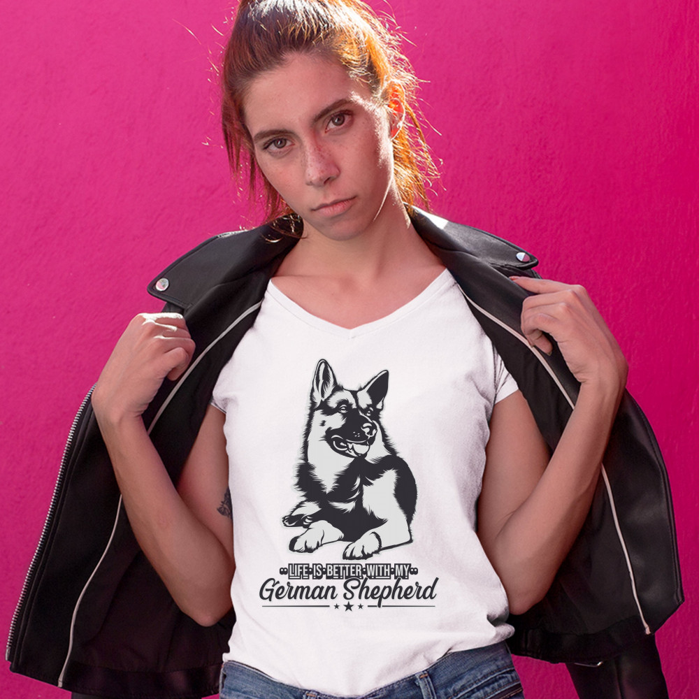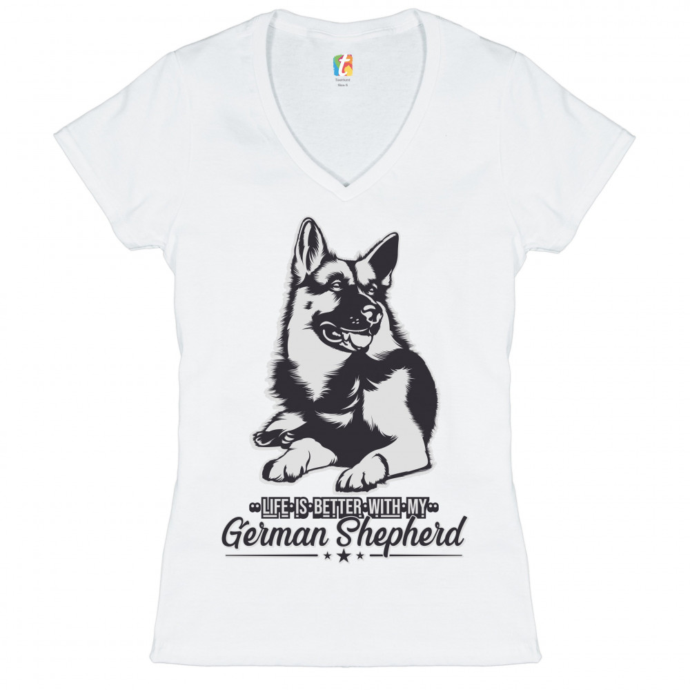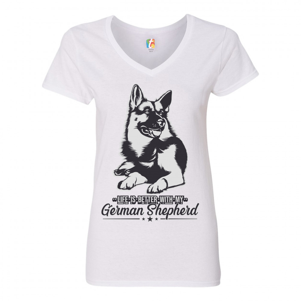 LIFE IS BETTER WITH MY GERMAN SHEPHERD women's v-neck t-shirt dog lover tee white