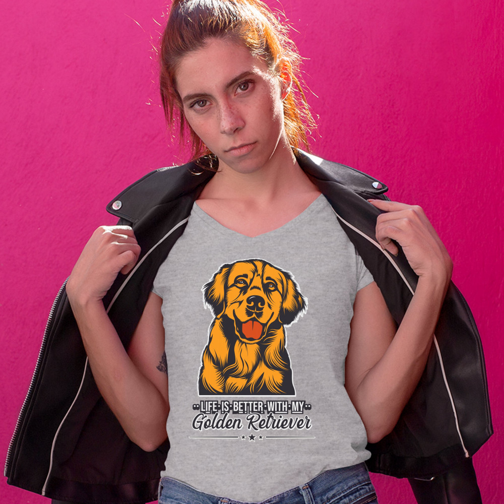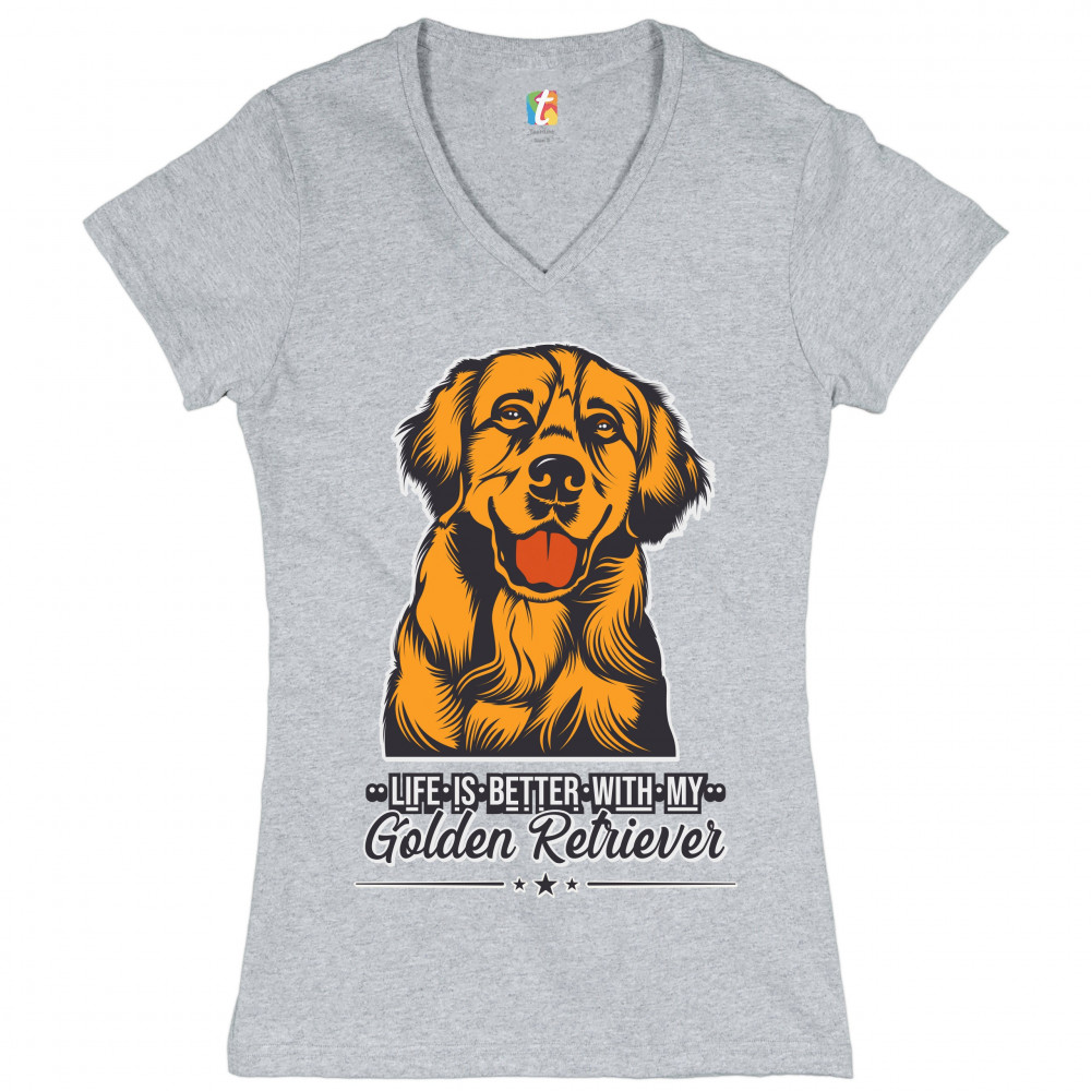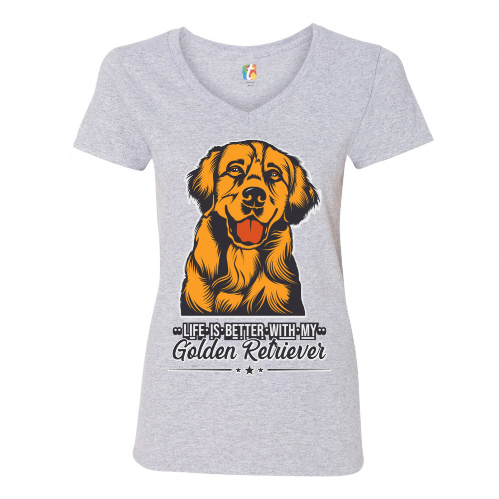 LIFE IS BETTER WITH MY GOLDEN RETRIEVER women's v-neck t-shirt dog owner tee gray