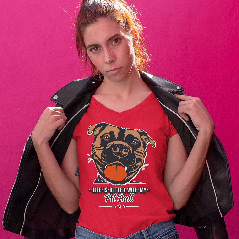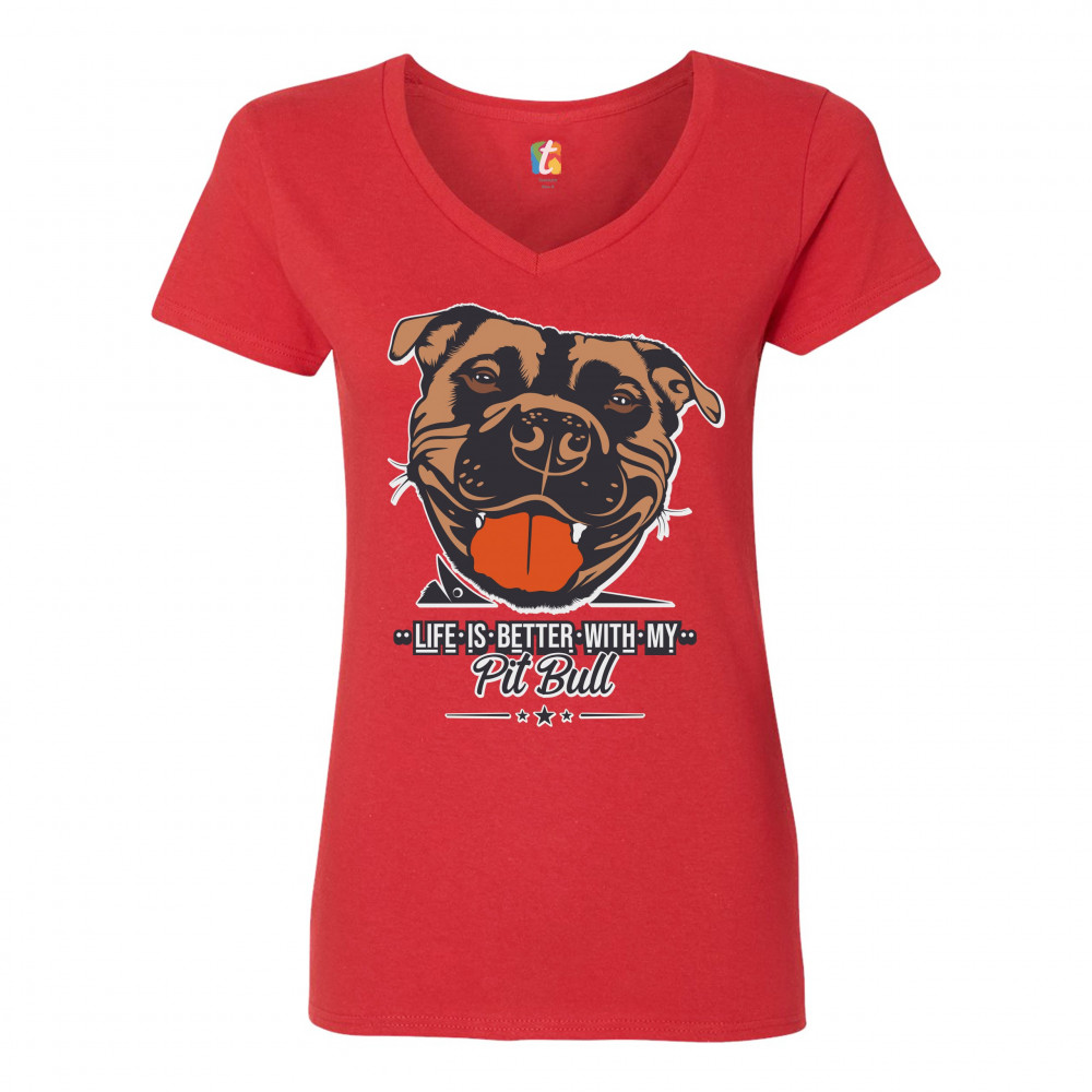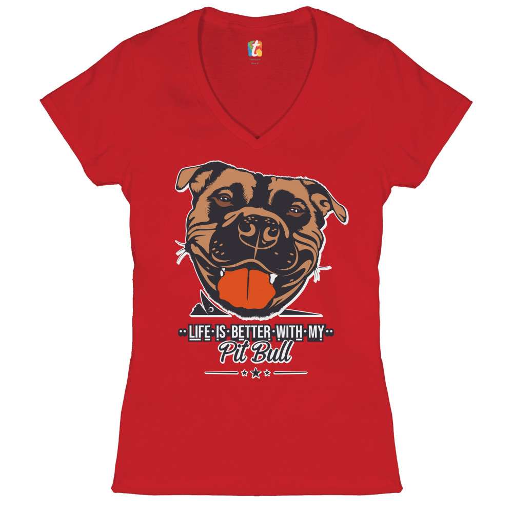 LIFE IS BETTER WITH MY PIT BULL women's v-neck t-shirt i love me dog pet tee red