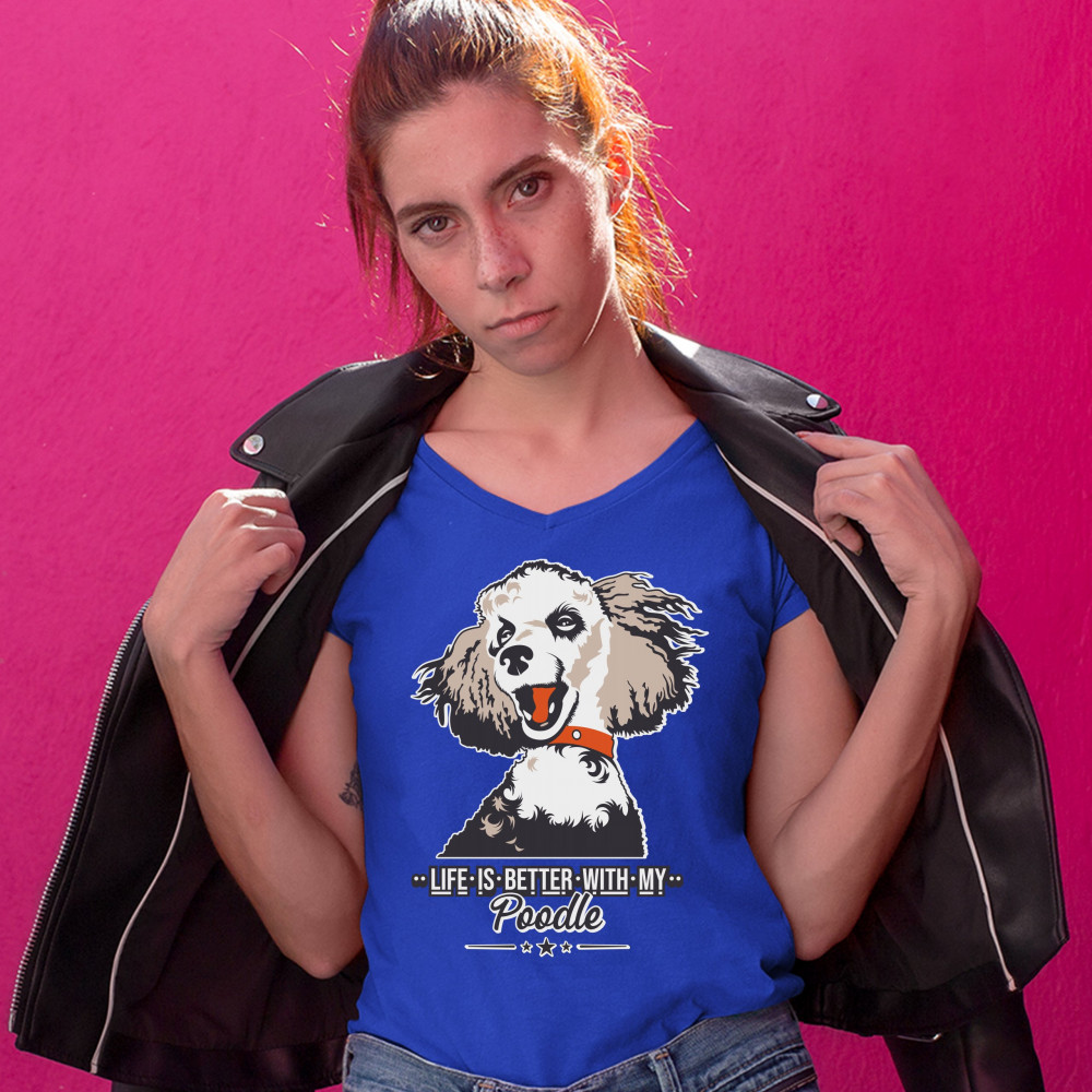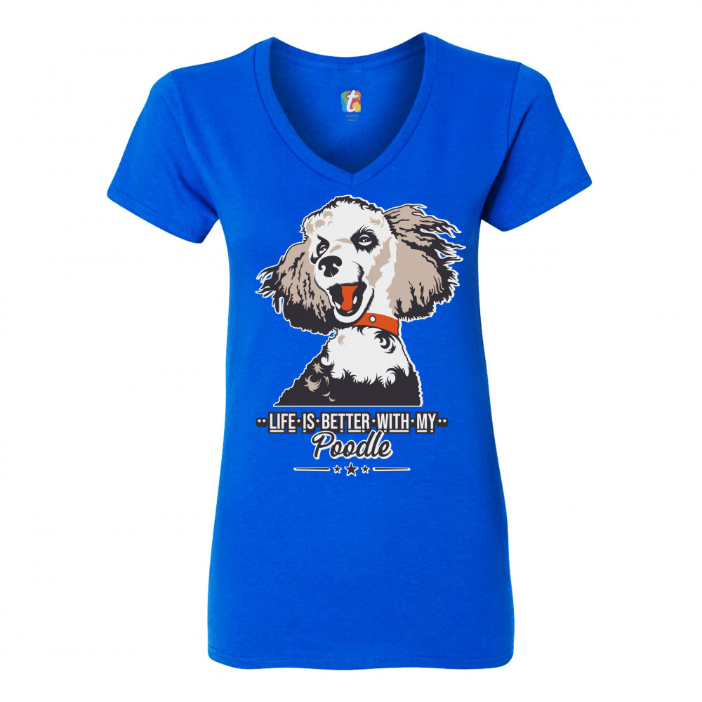 LIFE IS BETTER WITH MY POODLE women's v-neck t-shirt cute puppy dog lover tee royal blue
