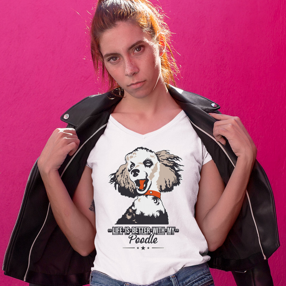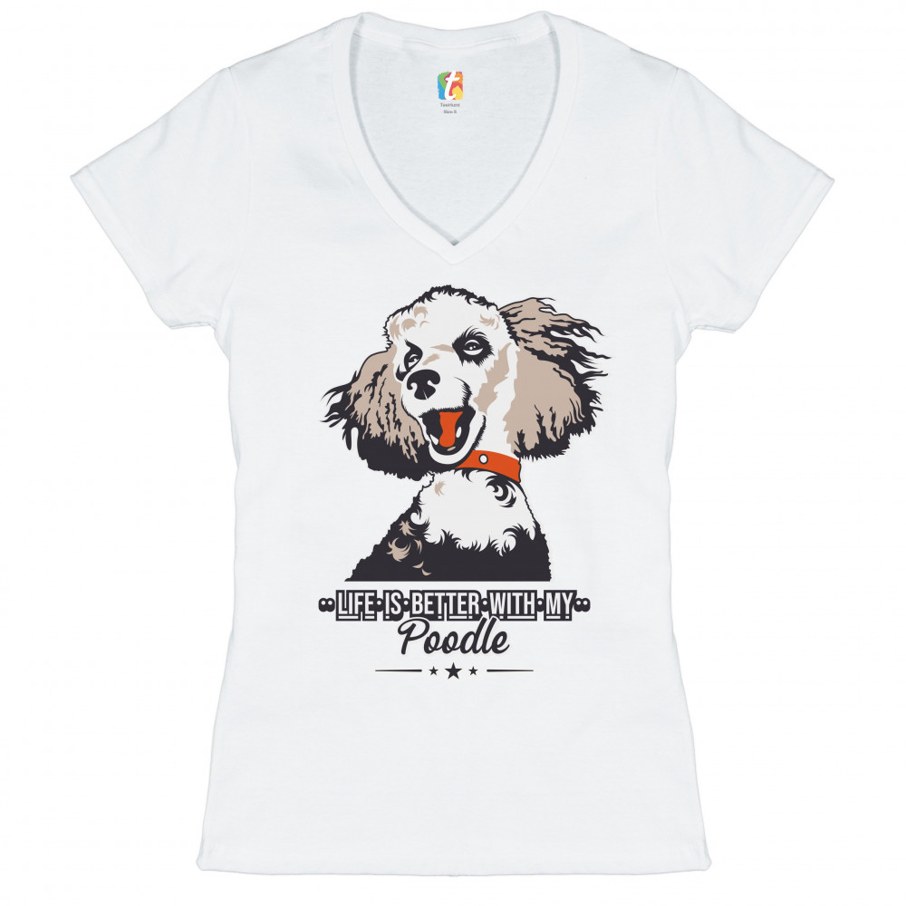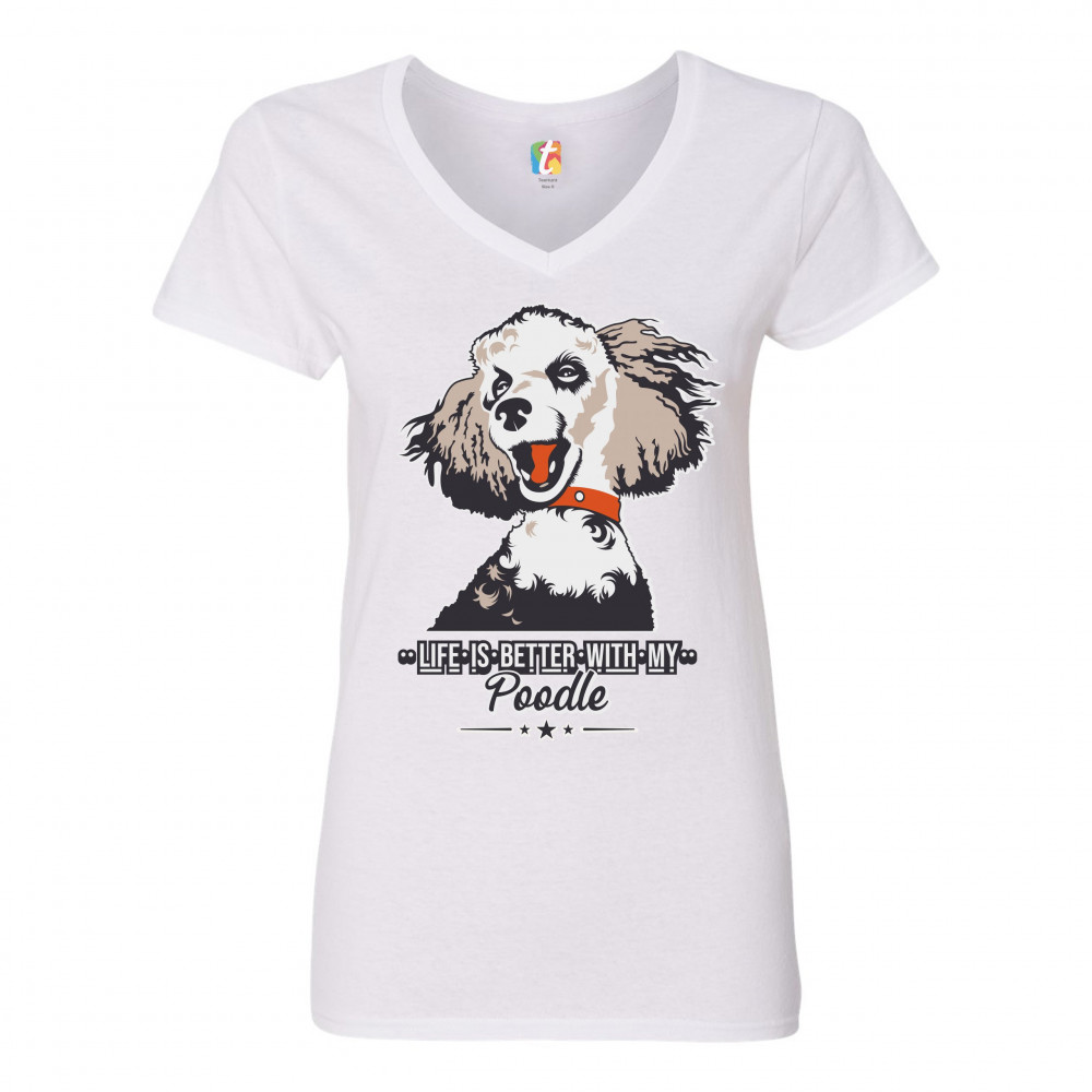LIFE IS BETTER WITH MY POODLE women's v-neck t-shirt cute puppy dog lover tee white