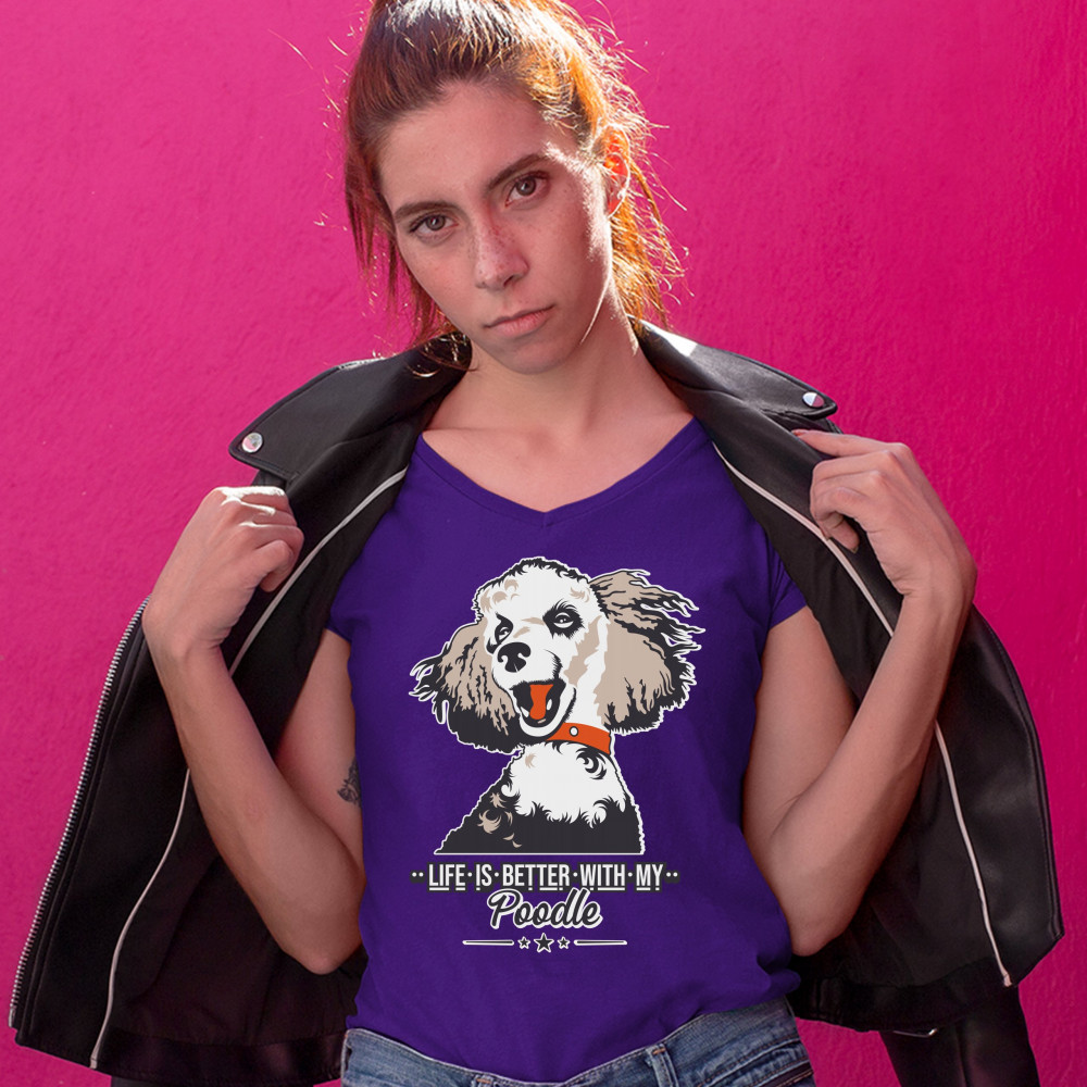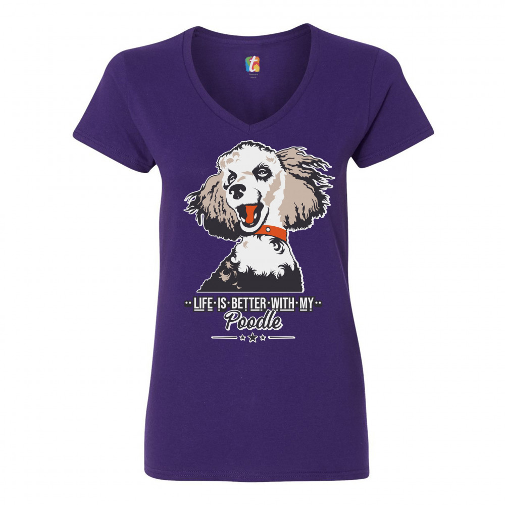 LIFE IS BETTER WITH MY POODLE women's v-neck t-shirt cute puppy dog lover tee purple