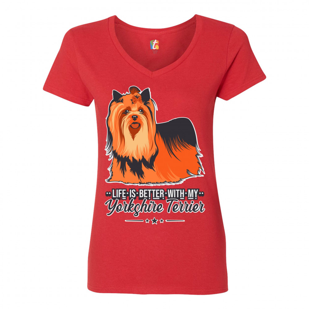LIFE IS BETTER WITH MY YORKSHIRE TERRIER women's v-neck t-shirt yorkie dog tee red