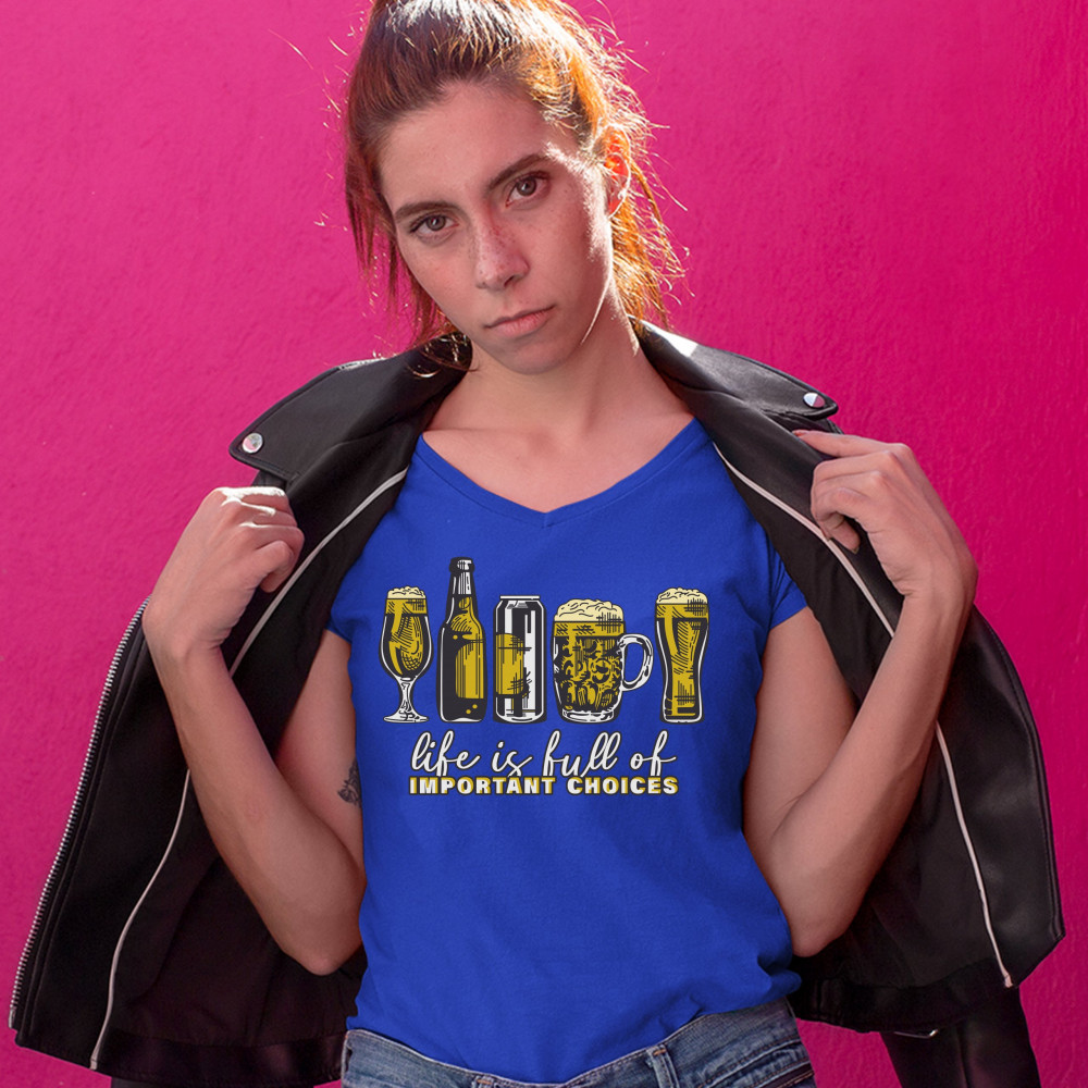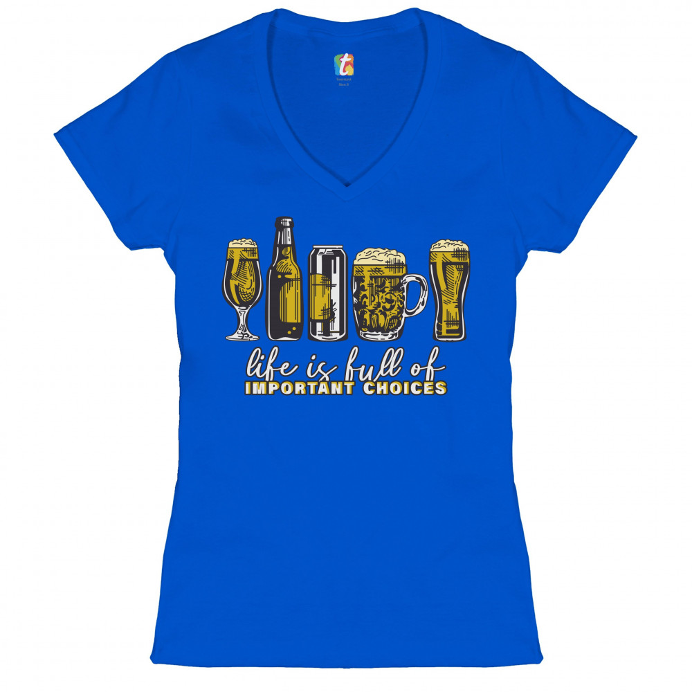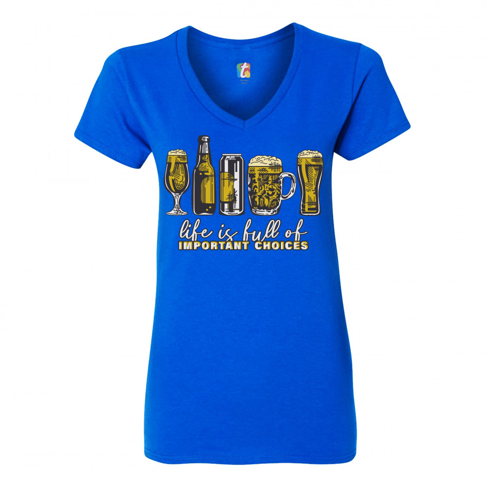 LIFE IS FULL OF IMPORTANT CHOICES women's v-neck t-shirt beer drinking ipa tee royal blue