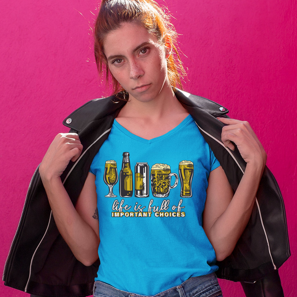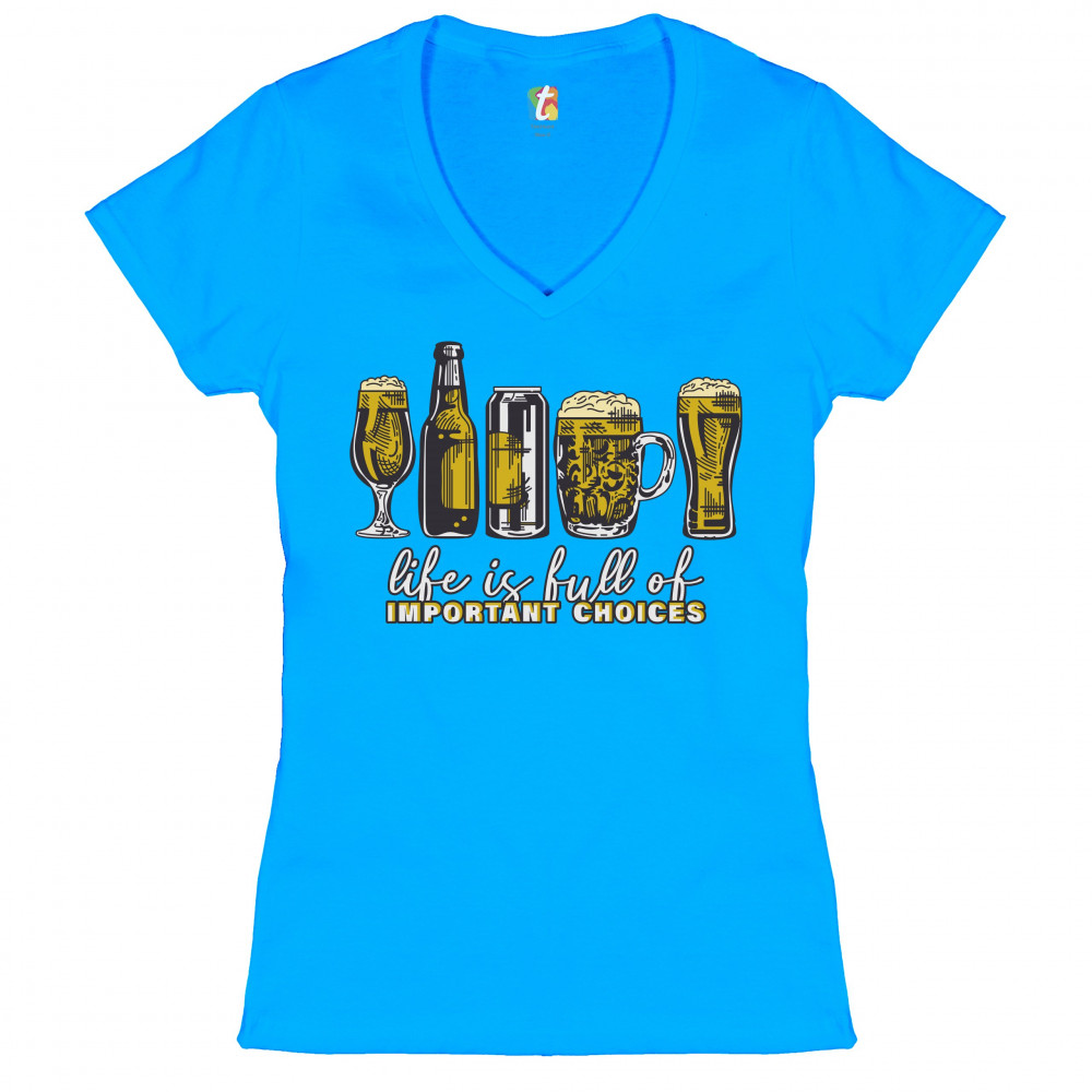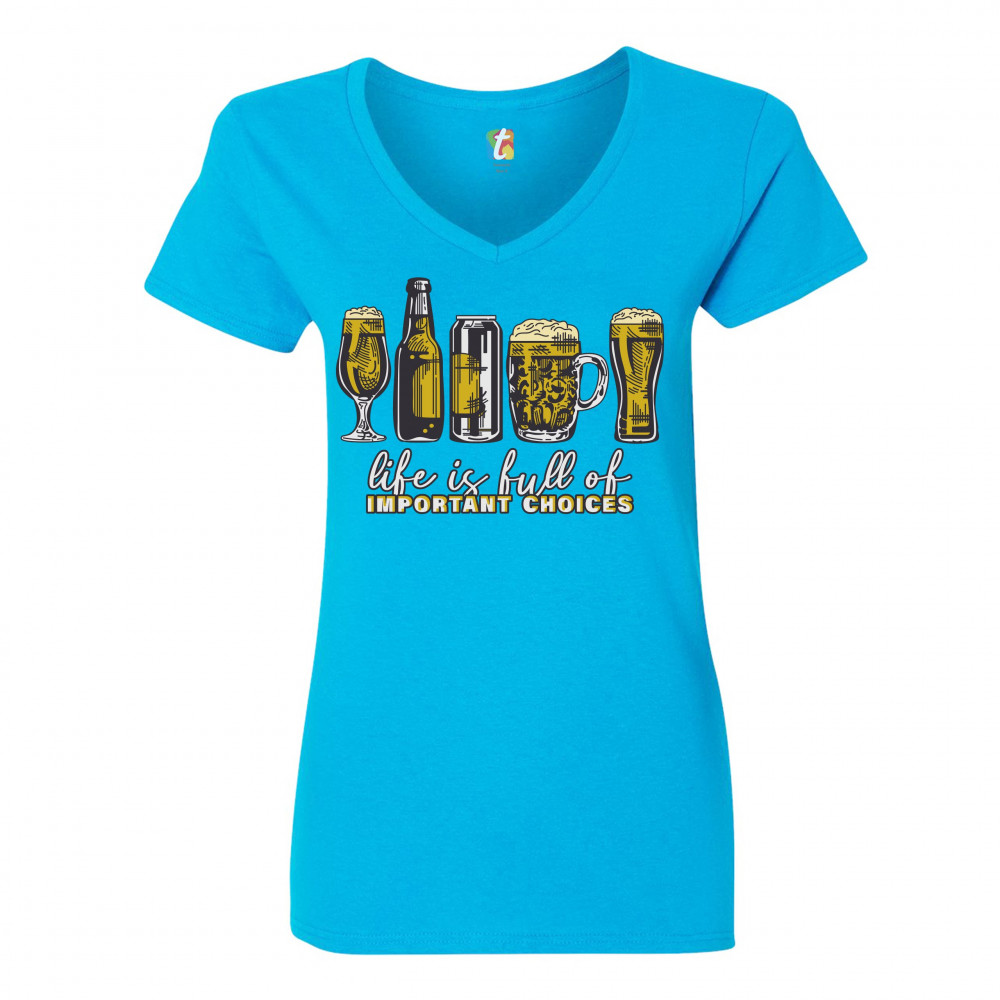 LIFE IS FULL OF IMPORTANT CHOICES women's v-neck t-shirt beer drinking ipa tee turquoise