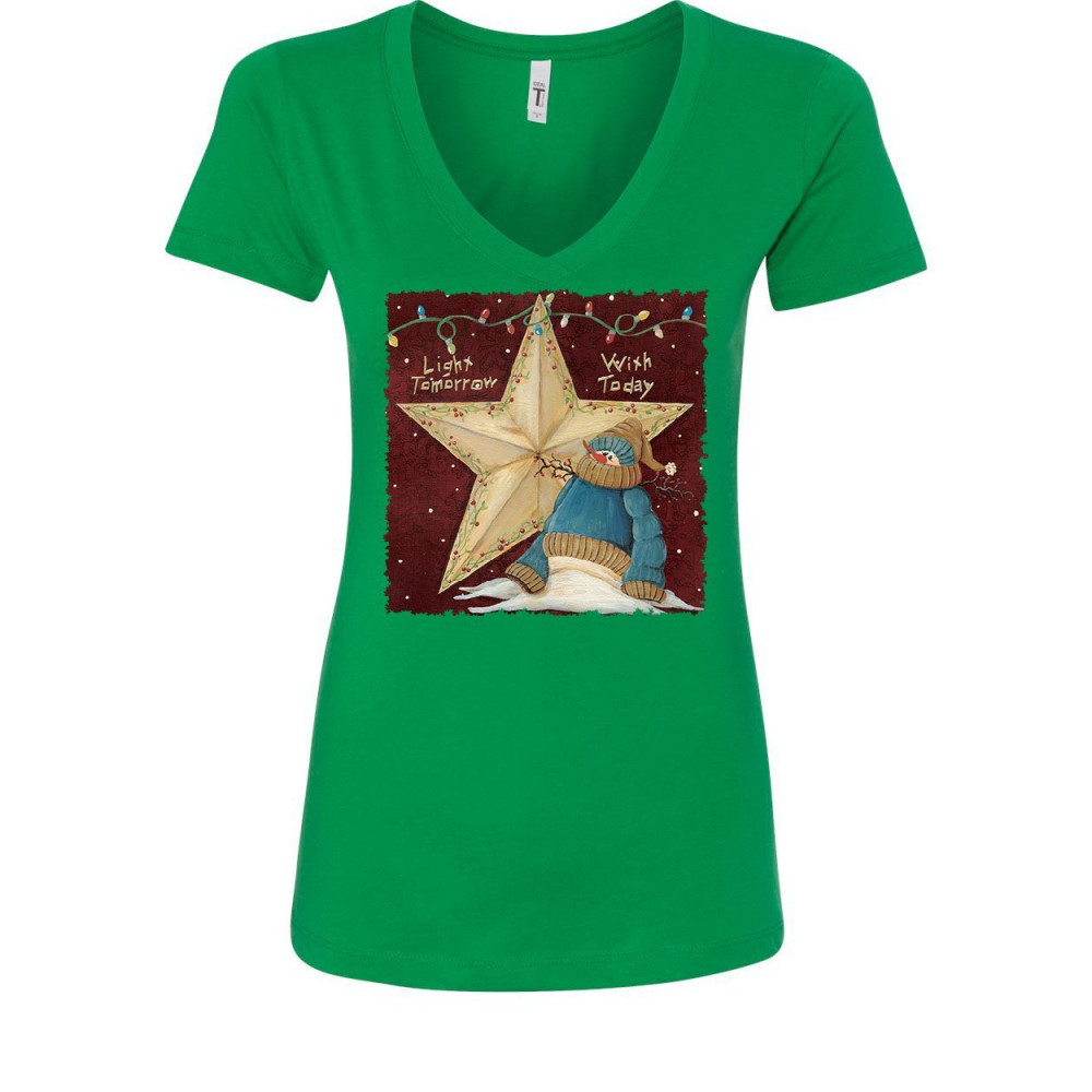 LIGHT TOMORROW WITH TODAY women's v-neck t-shirt cute christmas snowman holiday green