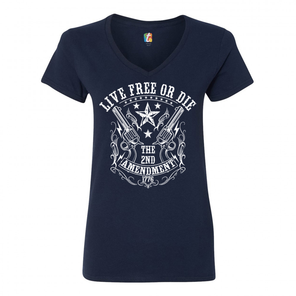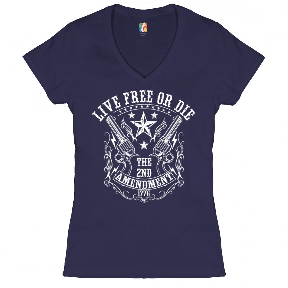 LIVE FREE OR DIE women's v-neck t-shirt the 2nd amendment 1776 patriotic tee navy blue