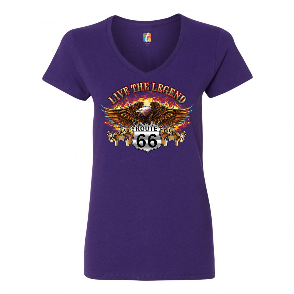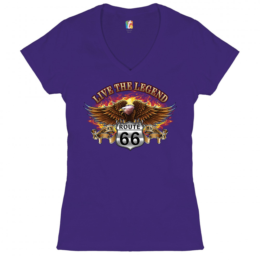 LIVE THE LEGEND AMERICA'S HIGHWAYS women's v-neck t-shirt route 66 biker tee purple