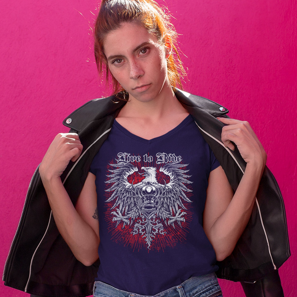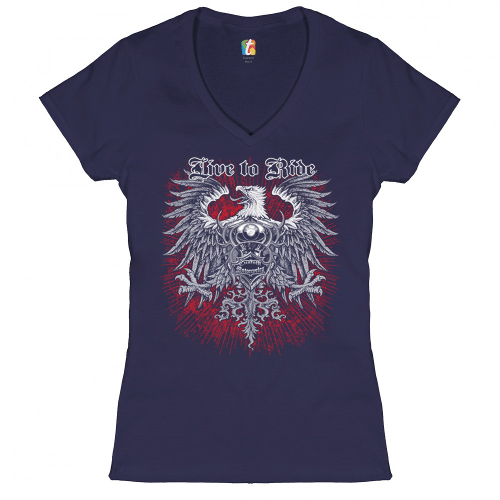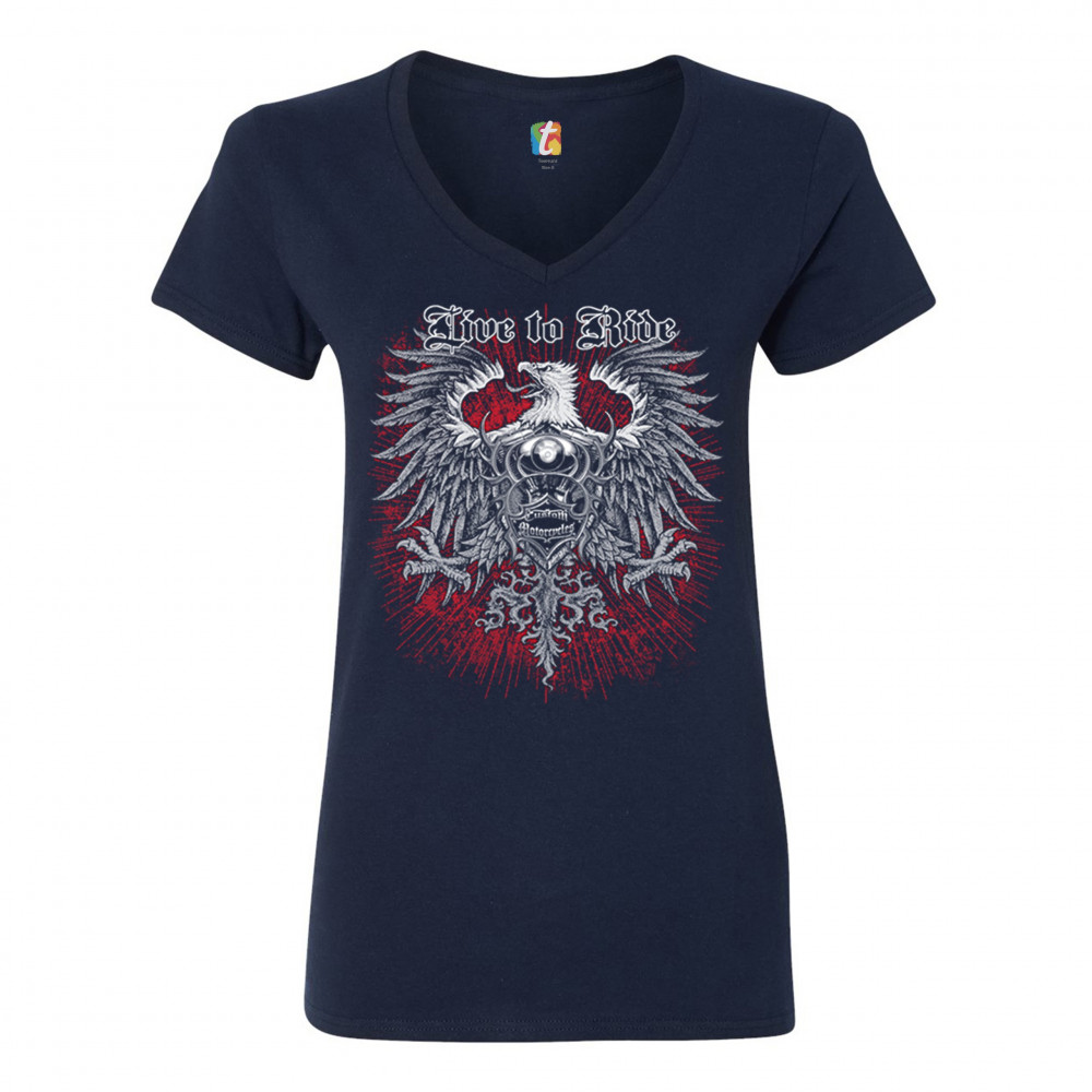 LIVE TO RIDE women's v-neck t-shirt custom motorcycles mc biker gang eagle tee navy blue