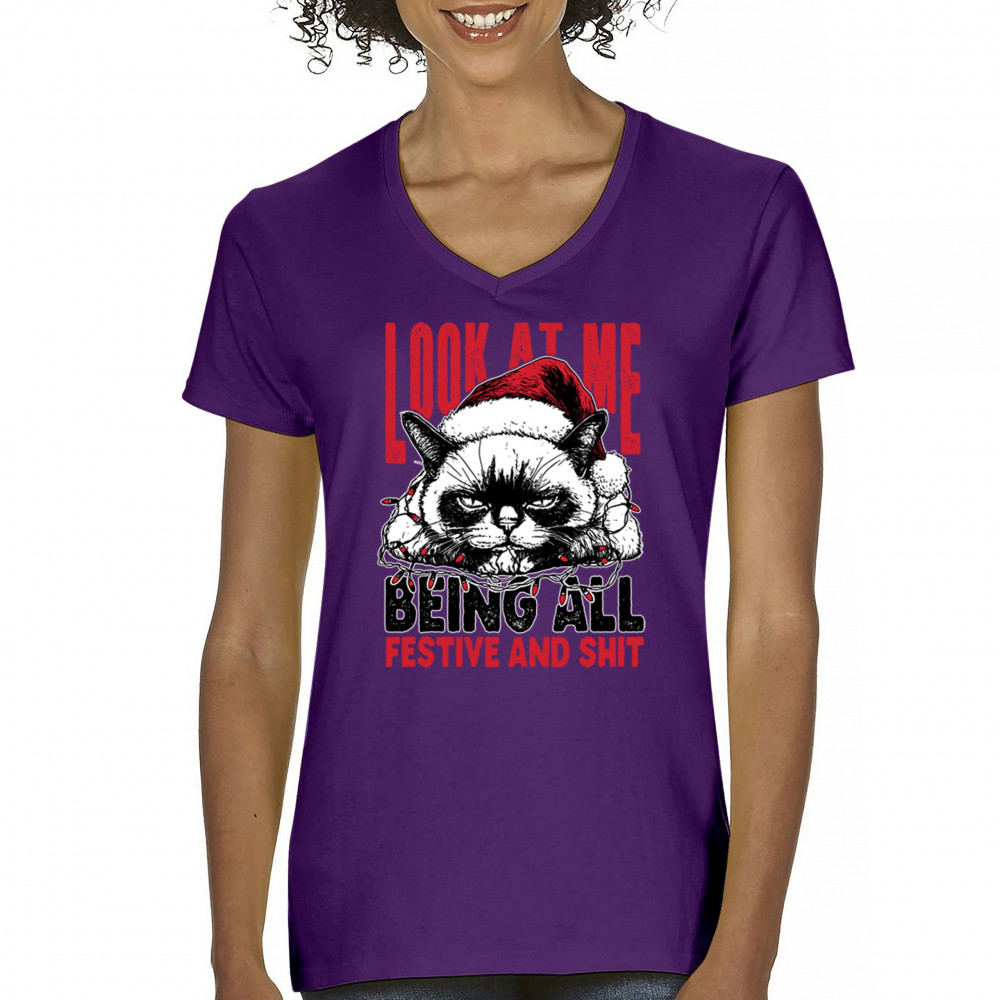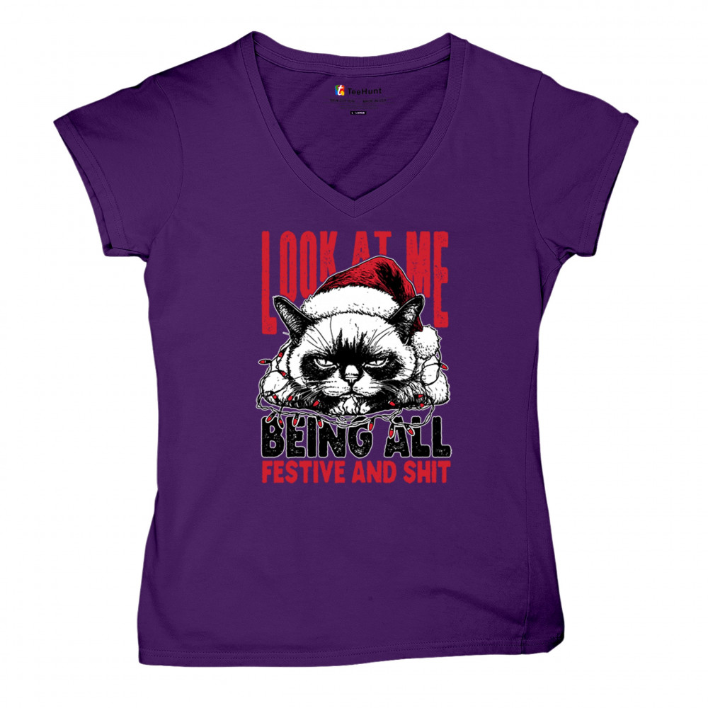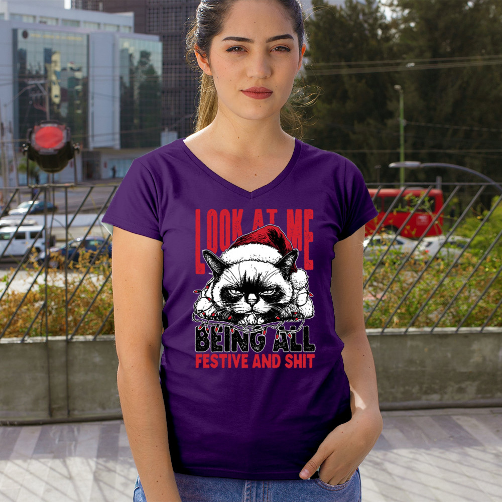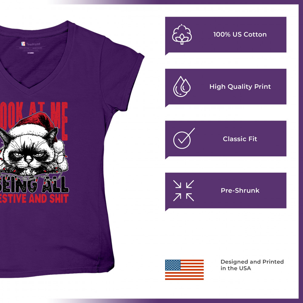 Grumpy Cat Christmas design with Santa hat, Christmas tree humor, Let It Snow vibes, Jingle Bells style, and sarcastic Merry Xmas spirit.