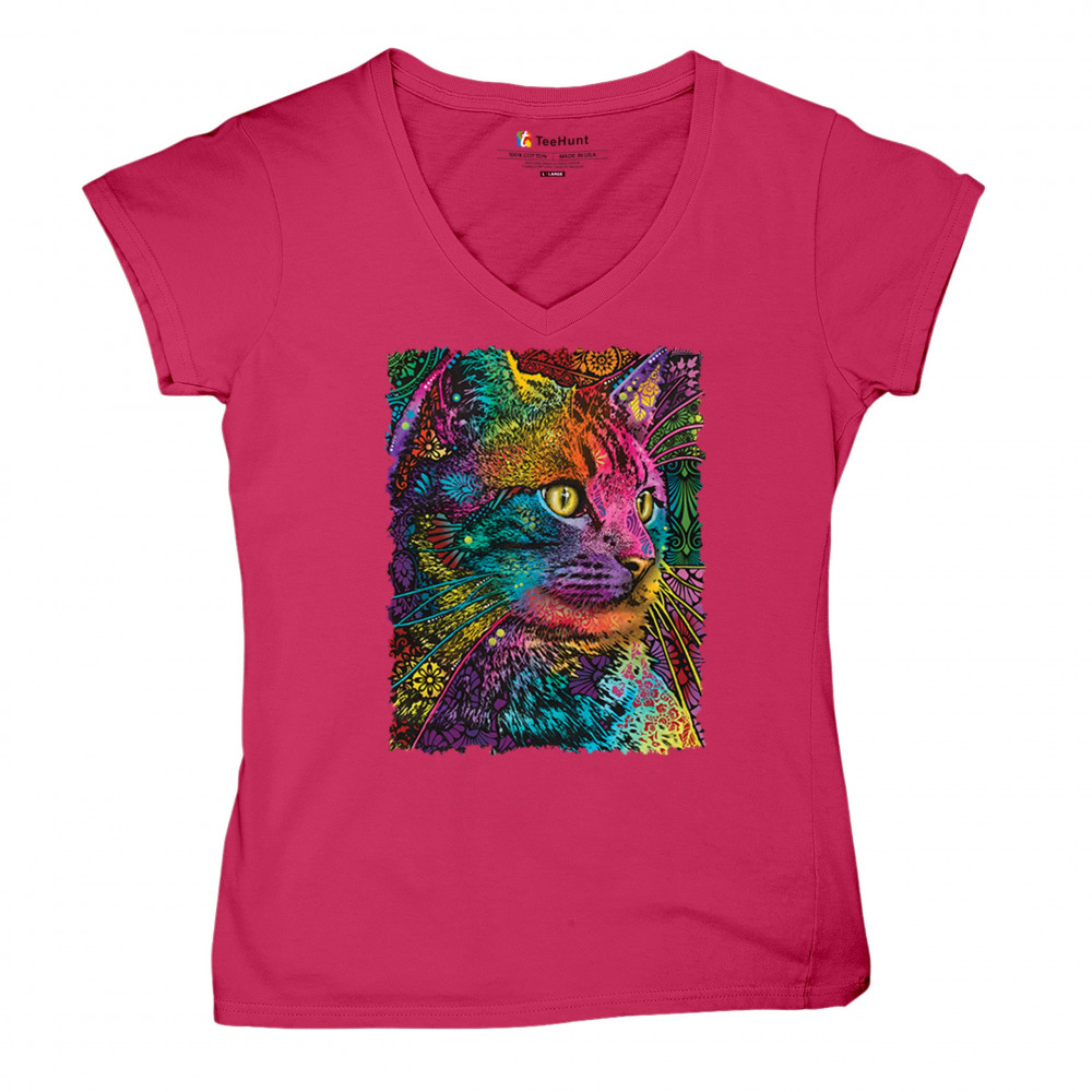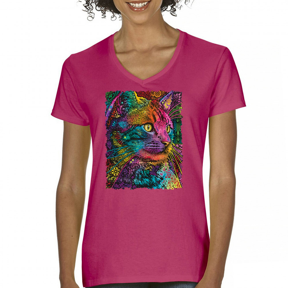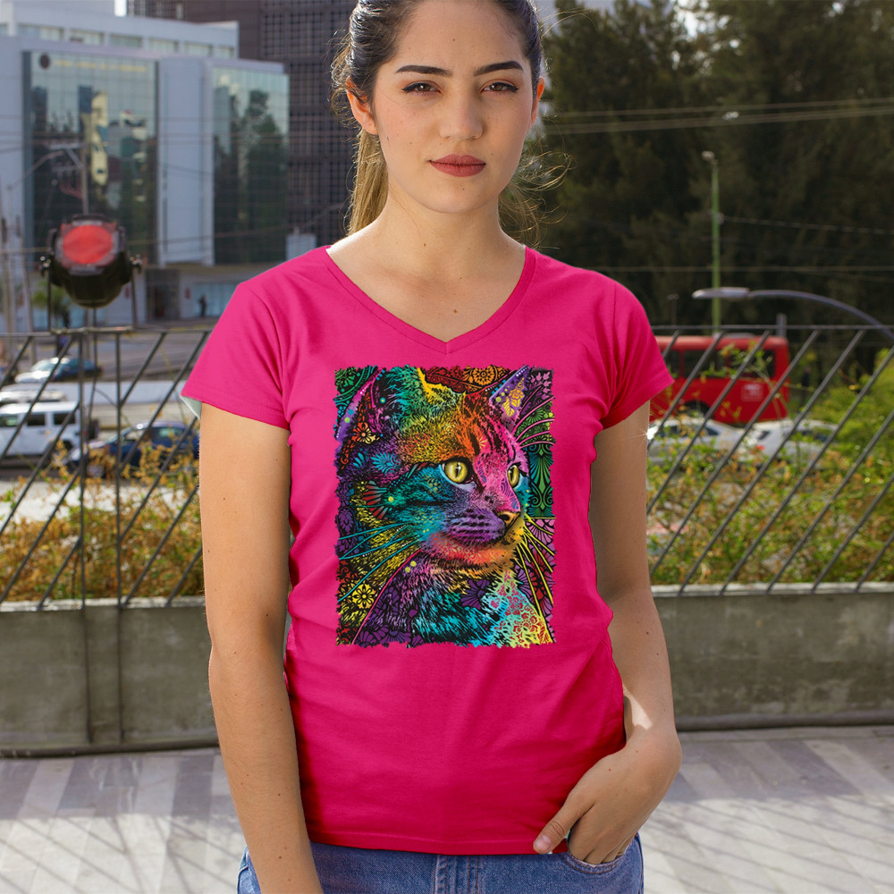LOVABLE CAT women's v-neck t-shirt dean russo colorful felis catus tee pink