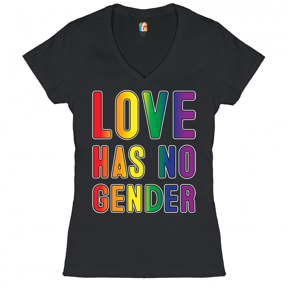 LOVE HAS NO GENDER women's v-neck t-shirt lesbian gay bi transgender ally tee black
