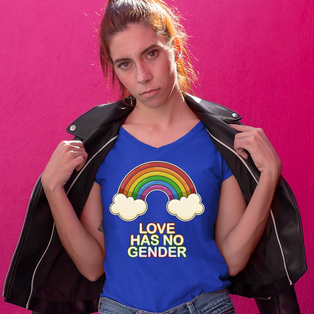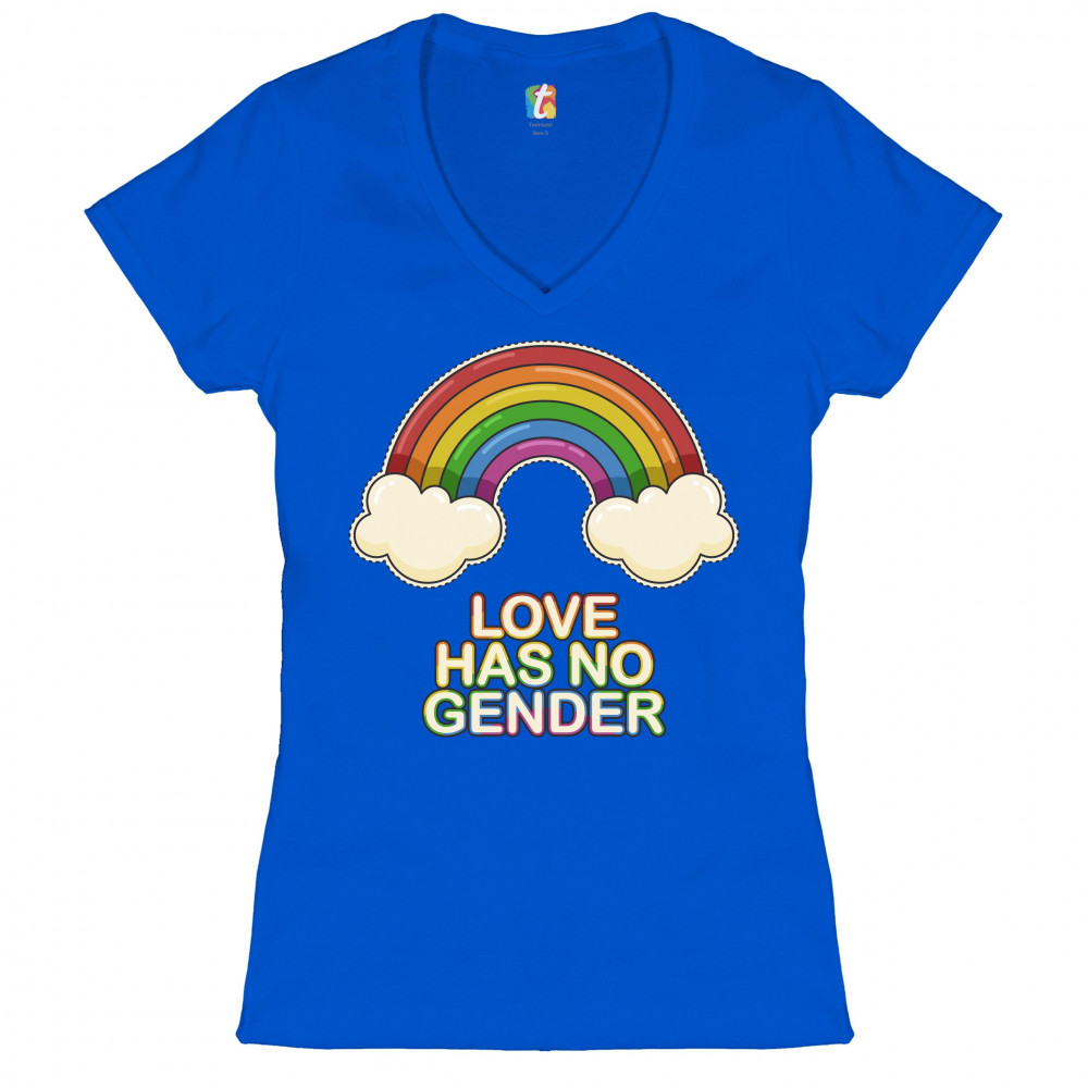 LOVE HAS NO GENDER women's v-neck t-shirt gay pride rainbow love is love tee royal blue